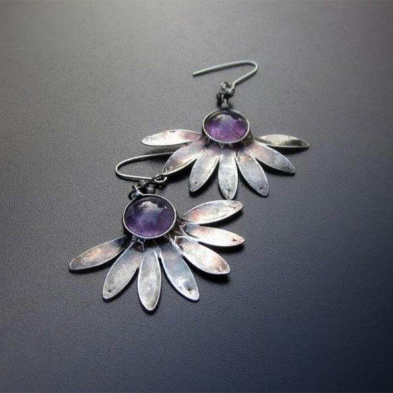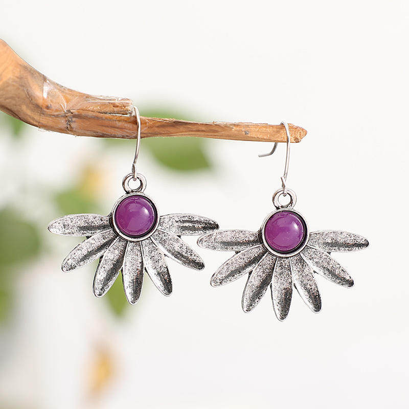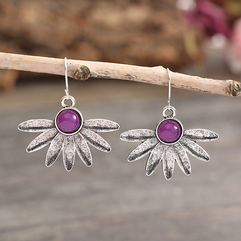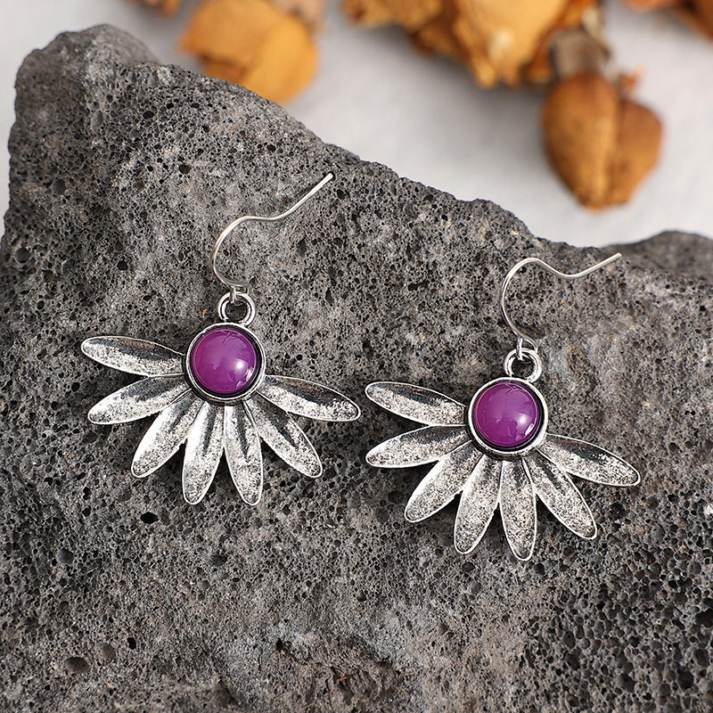 Be the first to review “3E3C Bohemian Floral Earrings | Fashion Purple Resin Gemstone Statement Dangle Earrings”