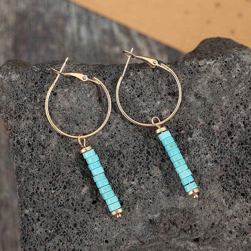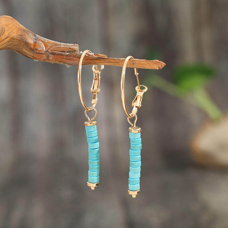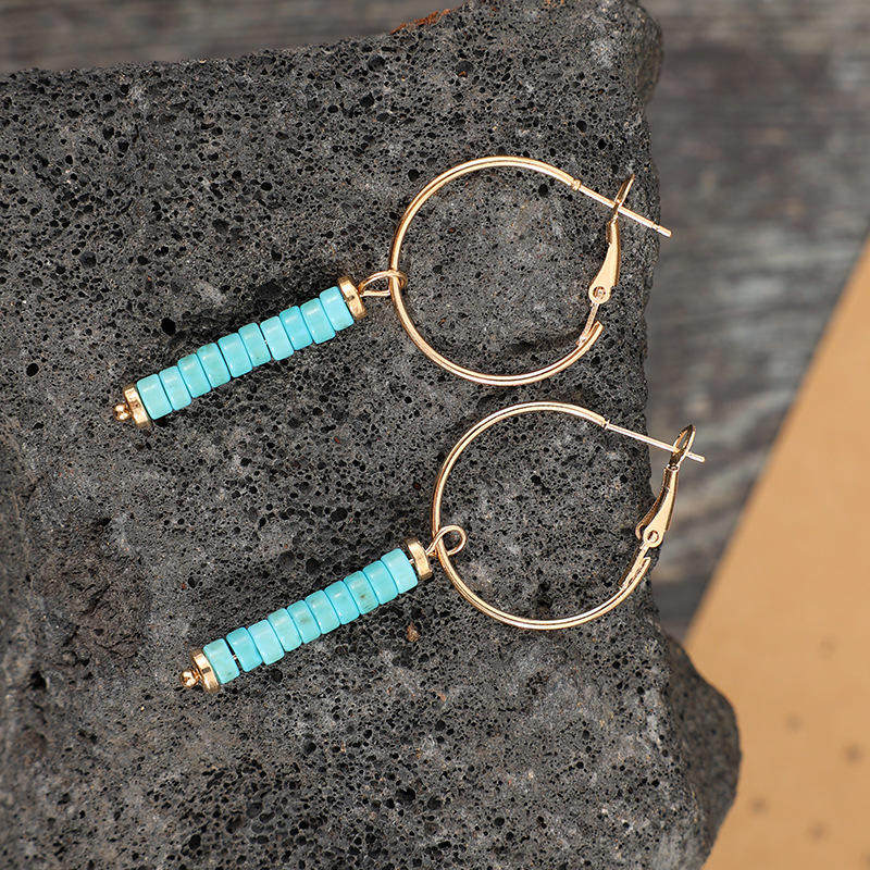 3E3C Bohemian Turquoise Earrings | High-Quality Magnesite Turquoise Bead Spacer Alloy Dangle Earrings for Women