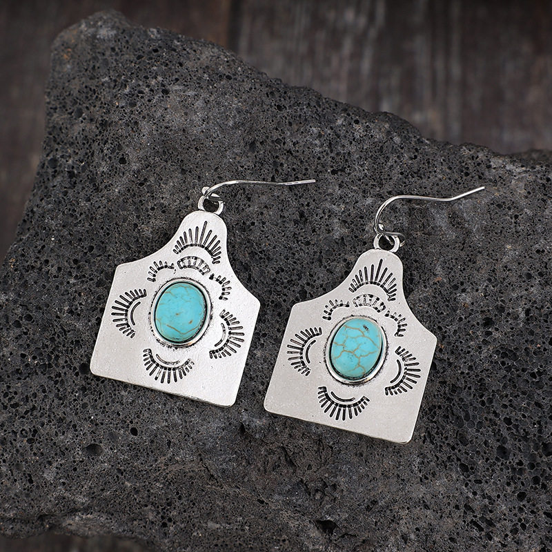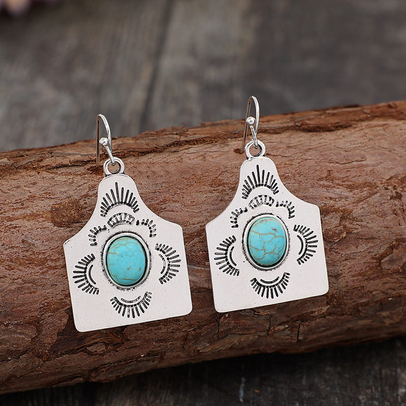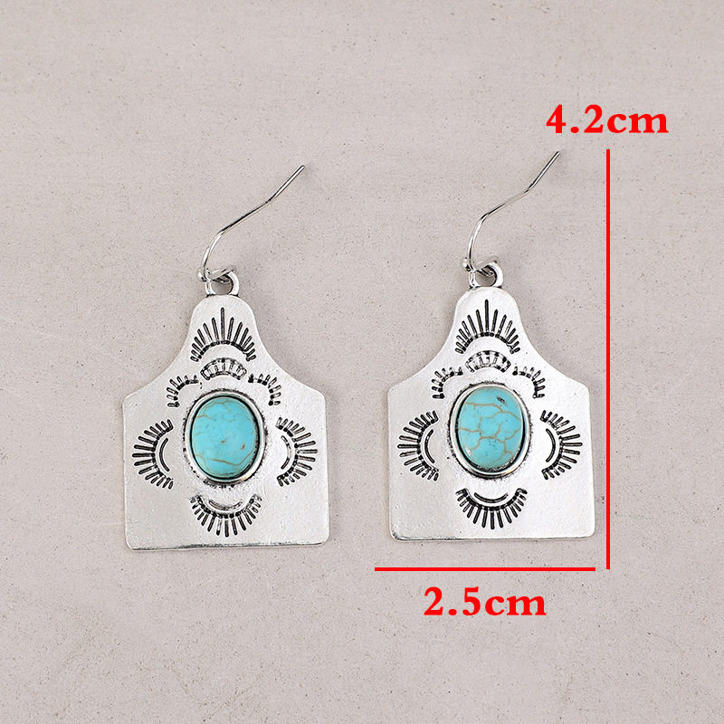 Be the first to review “3E3C Bohemian Vintage Turquoise Earrings | T-Shaped Inlaid Alloy Statement Dangle Earrings”