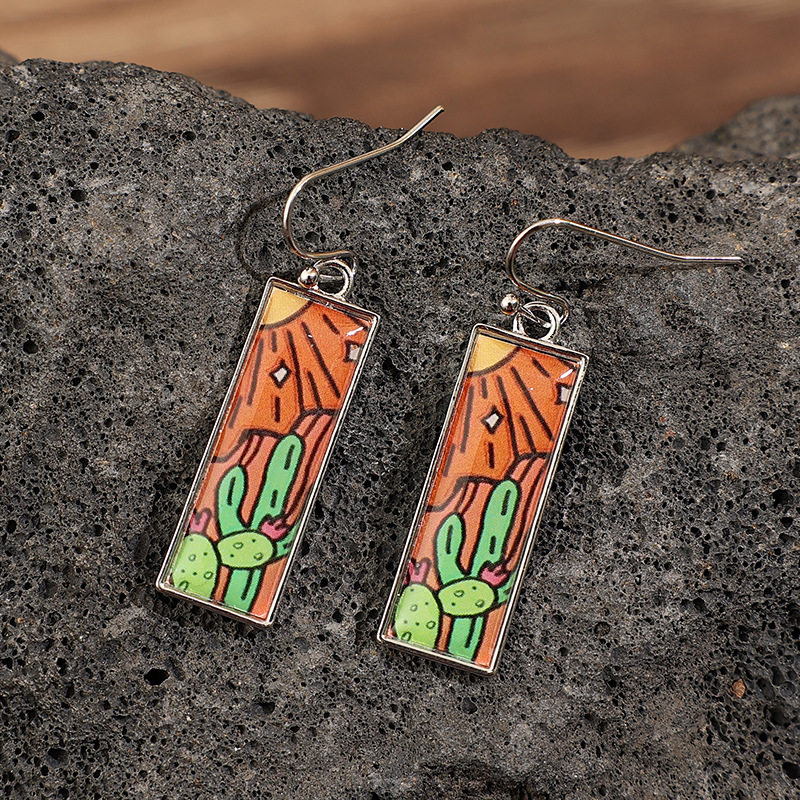 Be the first to review “3E3C Tribal Style Cactus Sun Rectangle Alloy Earrings | Sticker Detail Bohemian Statement Jewelry for Women”