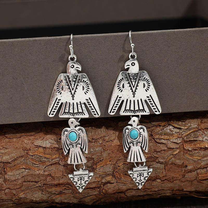 Be the first to review “3E3C Vintage Bohemian Eagle Earrings | Turquoise Inlaid Patchwork Alloy Statement Dangle Earrings”