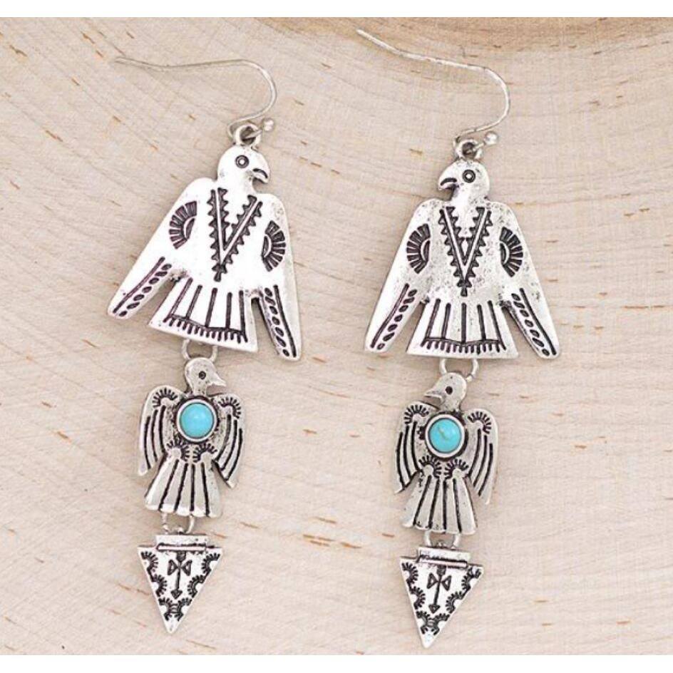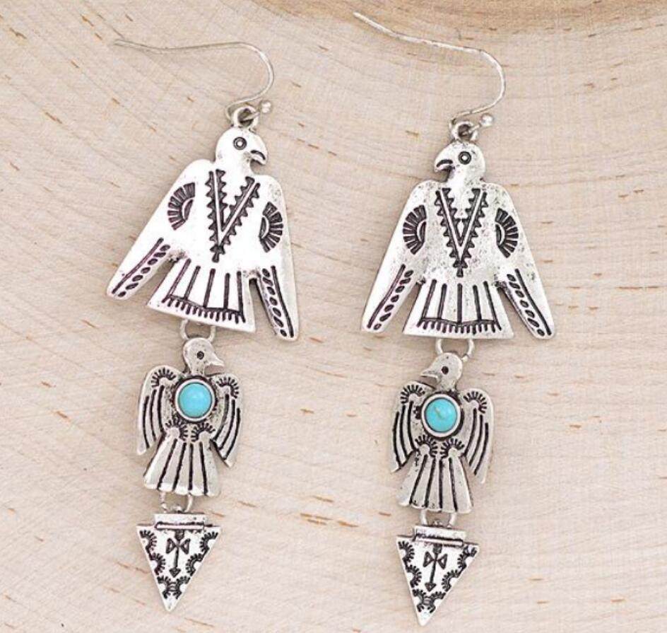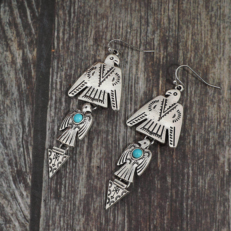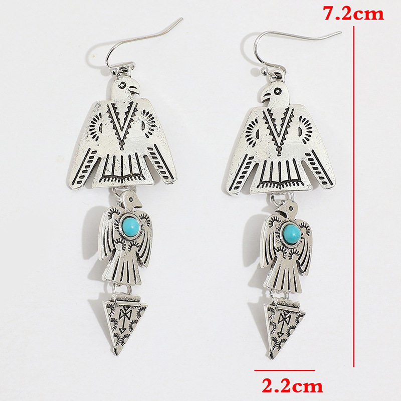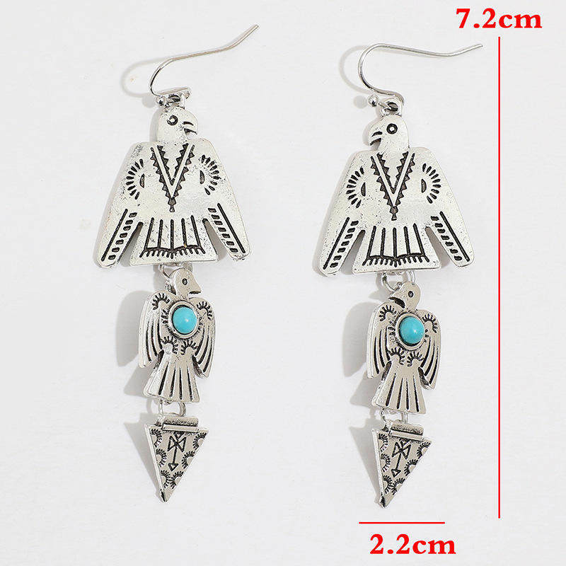 3E3C Vintage Bohemian Eagle Earrings | Turquoise Inlaid Patchwork Alloy Statement Dangle Earrings
