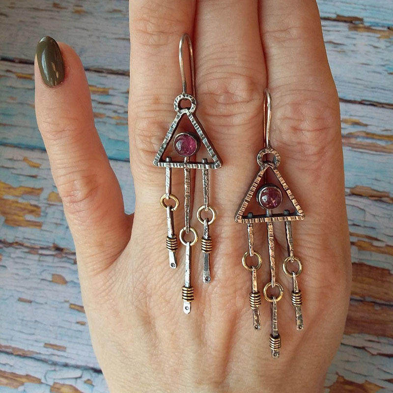 3E3C Vintage Geometric Triangle Dangle Earrings | Unique Retro Statement Jewelry for Women
