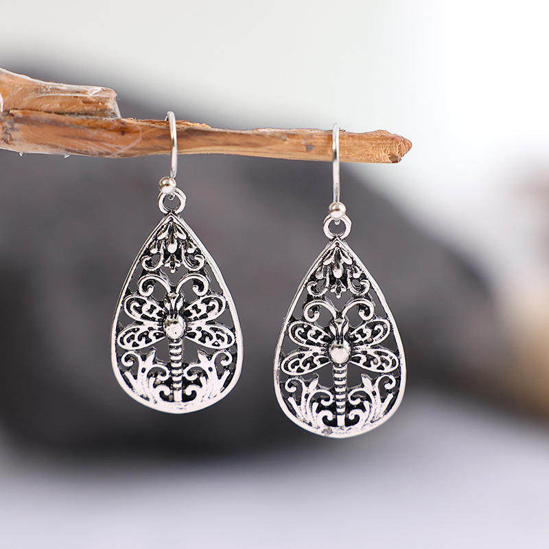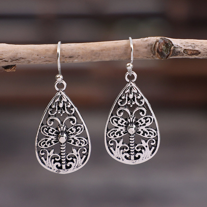 Be the first to review “3E3C Vintage Hollow Dragonfly Earrings | Ethnic Style Carved Teardrop Statement Dangle Earrings”
