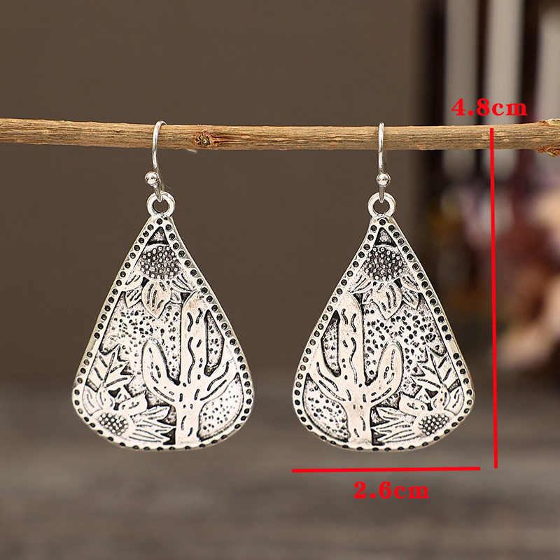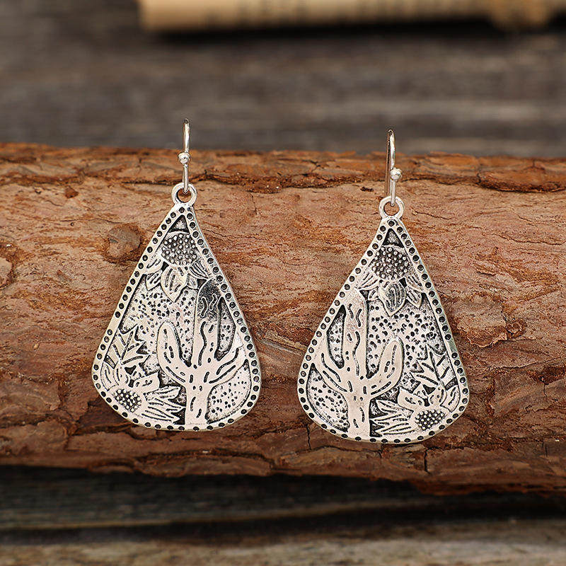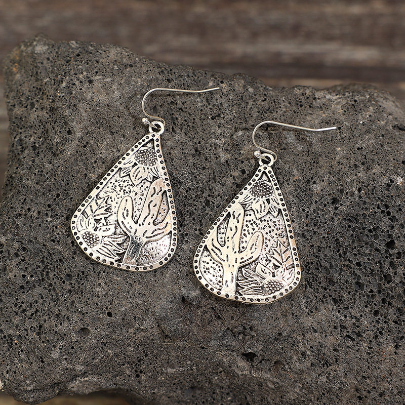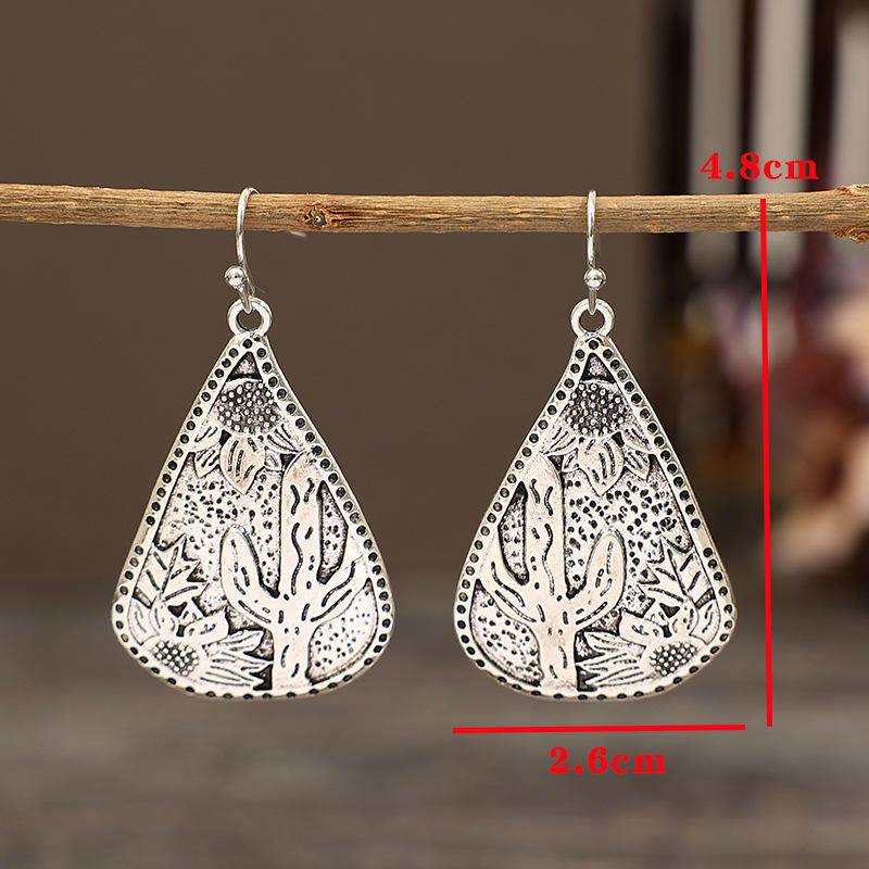 3E3C Vintage Minimalist Cactus & Sunflower Earrings | Antiqued Statement Dangle Jewelry for Women