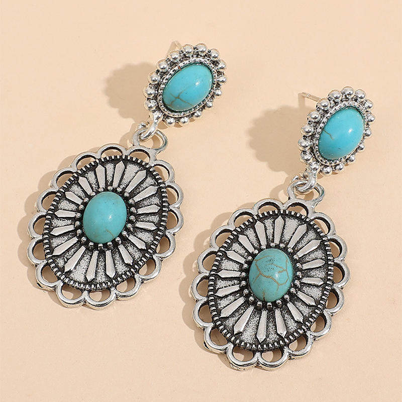 Be the first to review “3E3C Vintage Oval Carved Turquoise Studs | Bohemian Ethnic Waterdrop Dangle Statement Jewelry”