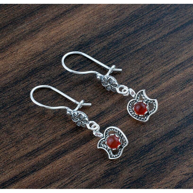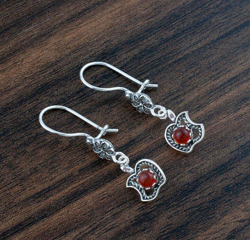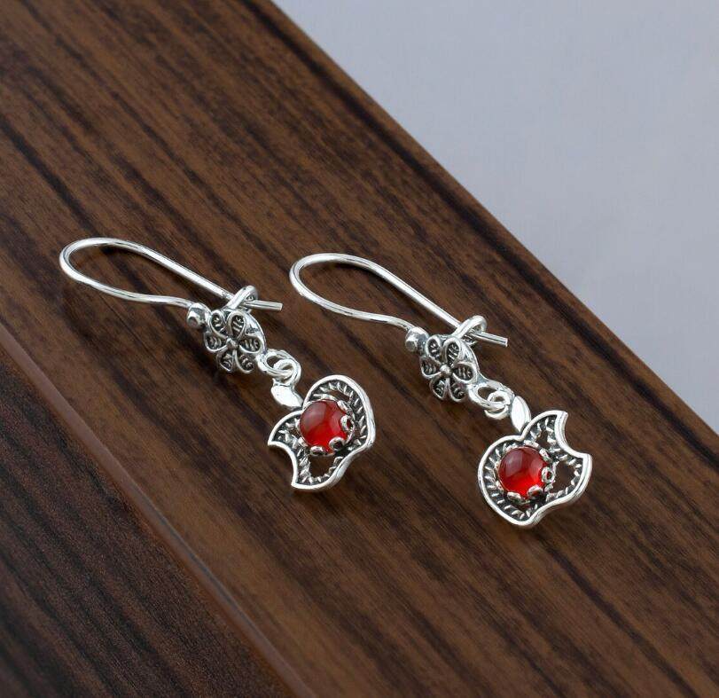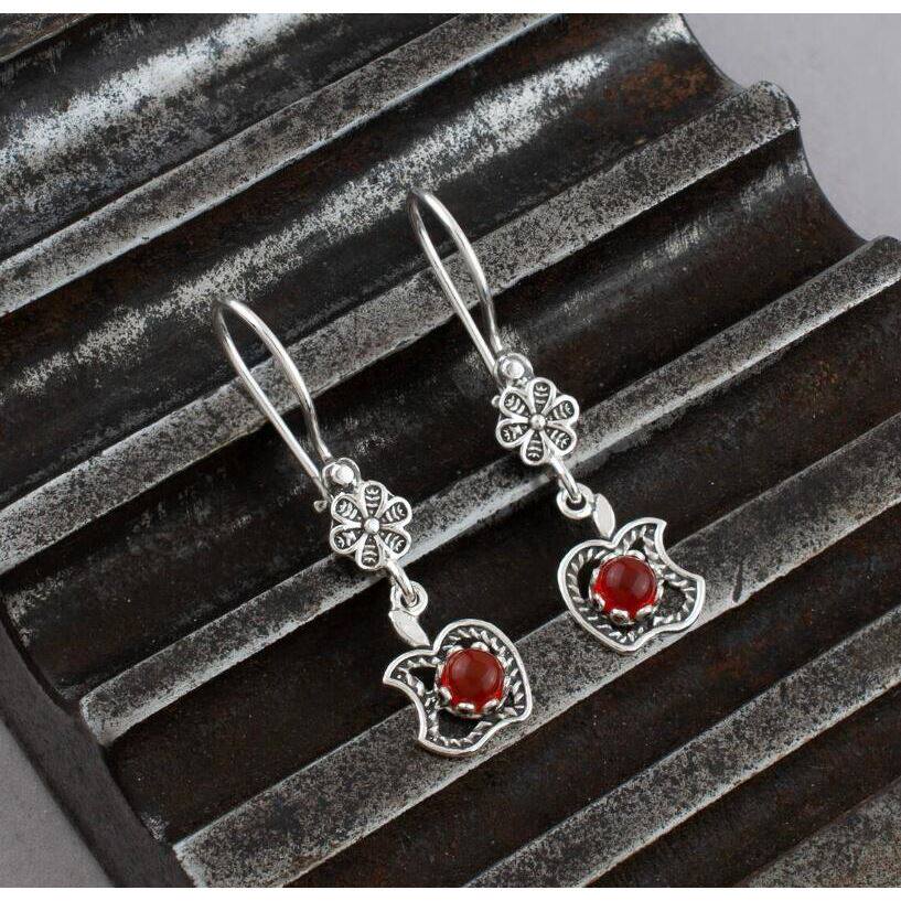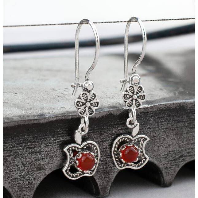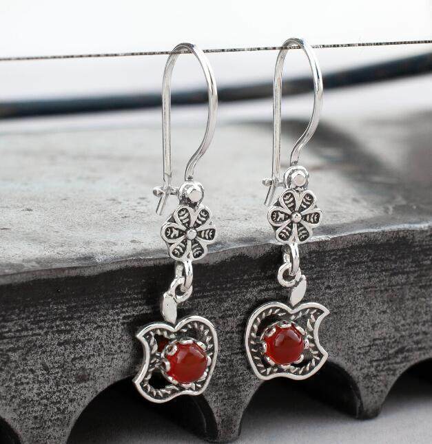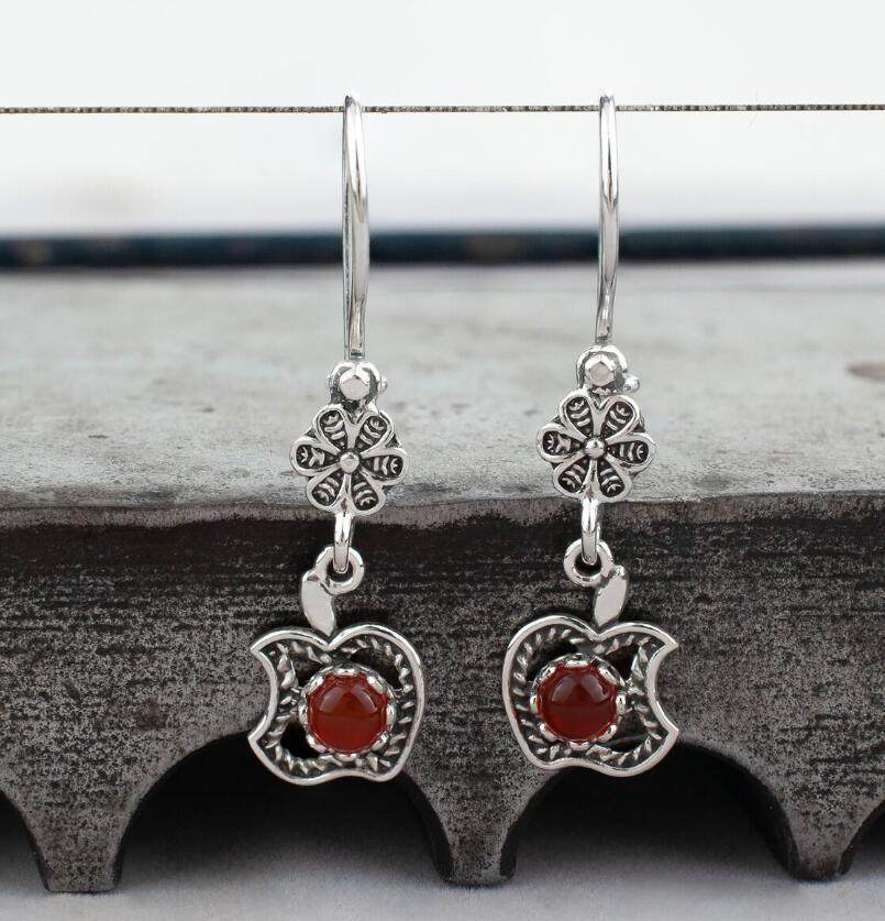 3E3C Vintage Petal Apple Earrings | Ruby Inlaid Alloy Statement Earrings for Retro Elegant Style
