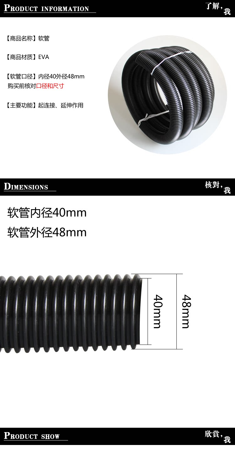Hose Diameter: Inner diameter 40mm, outer diameter 48mm (connectors not included. Please check the diameter carefully before purchasing)