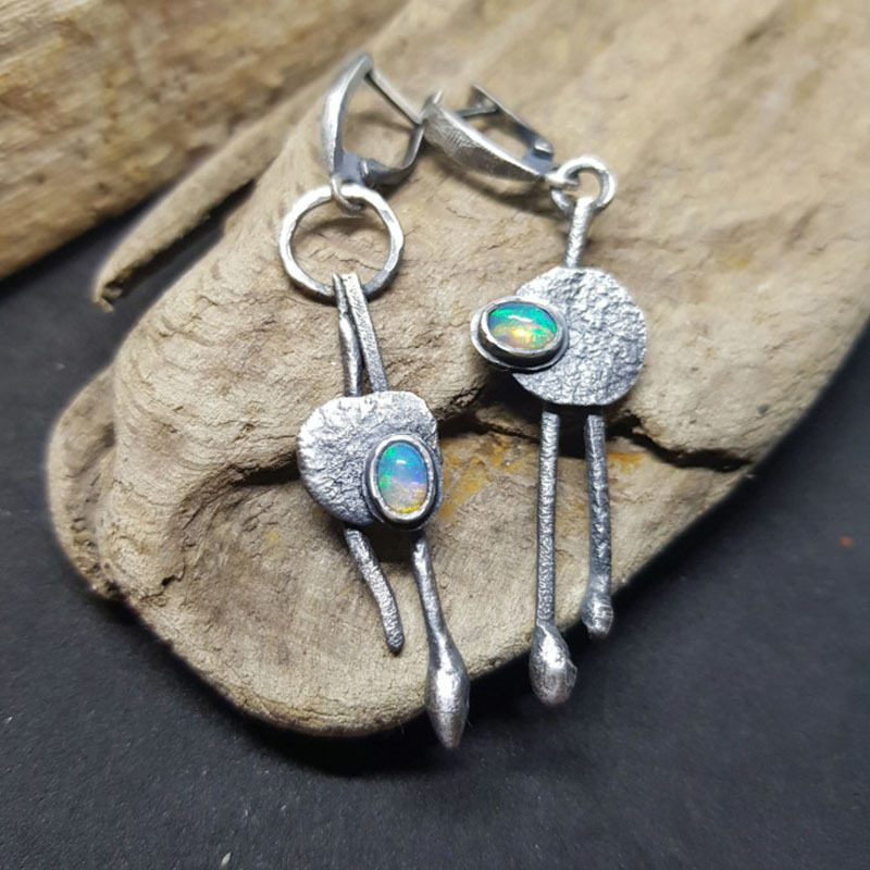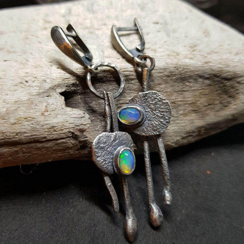 Be the first to review “Asymmetric Multicolored Opal Earrings Tribal Jewelry Drop Earrings”