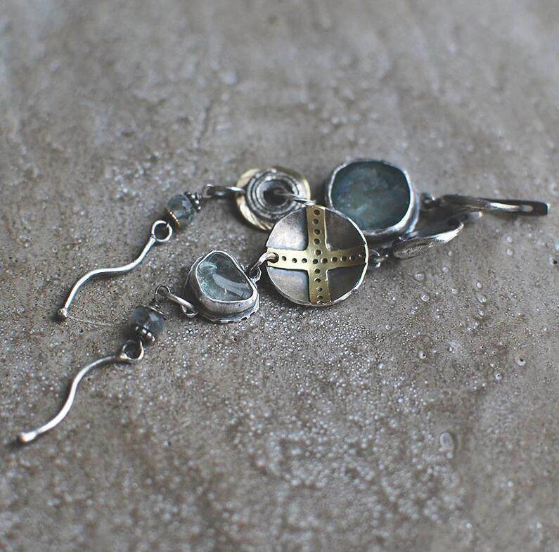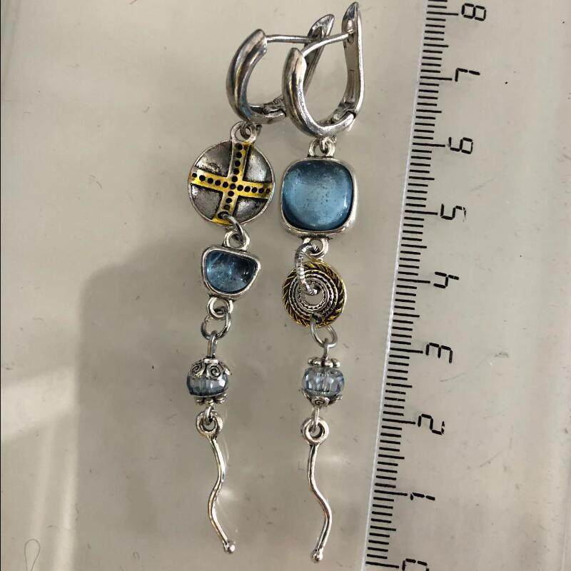 Be the first to review “Asymmetrical Long Dangle Earrings for Women | Tribal Style with Sky Blue Stone Cross Round Metal Vintage Jewelry”