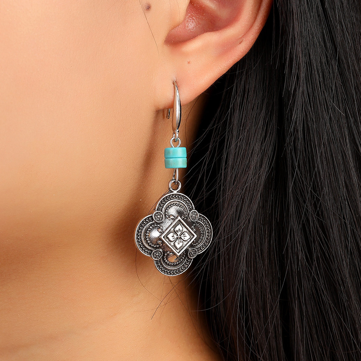Be the first to review “Bohemian Beaded Turquoise Earrings Vintage Auspicious Carved Drop Jewelry for Women”