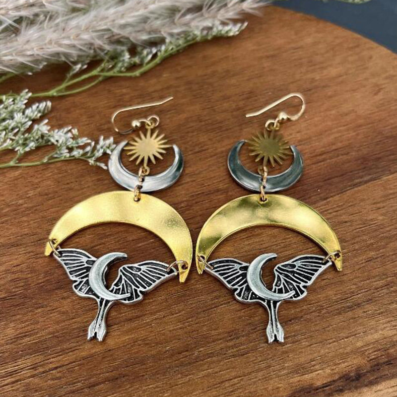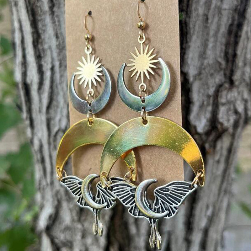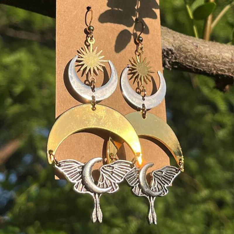 Bohemian Two-Tone Sun & Moon Earrings Bold Crescent Moth Statement Jewelry for Women