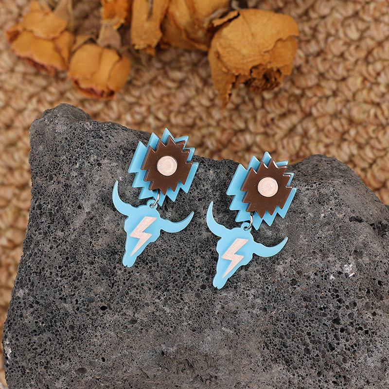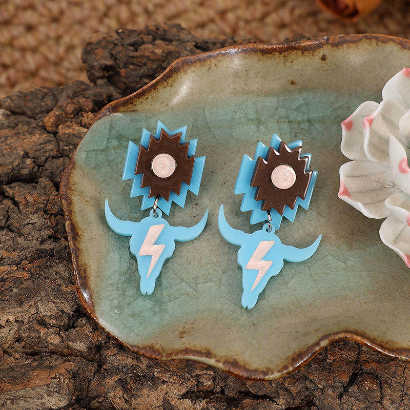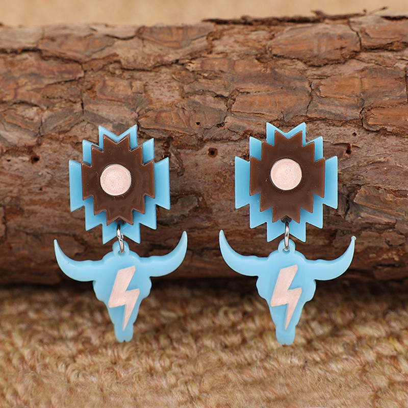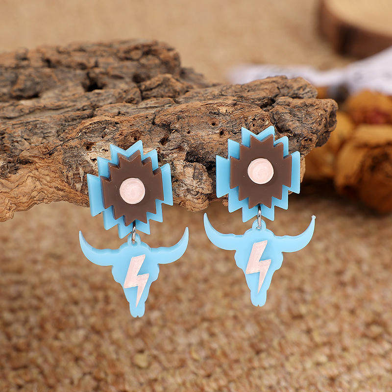 Bold Bull Head Lightning Acrylic Stud Earrings Trendy Geometric Dangle Jewelry for Women In Stock