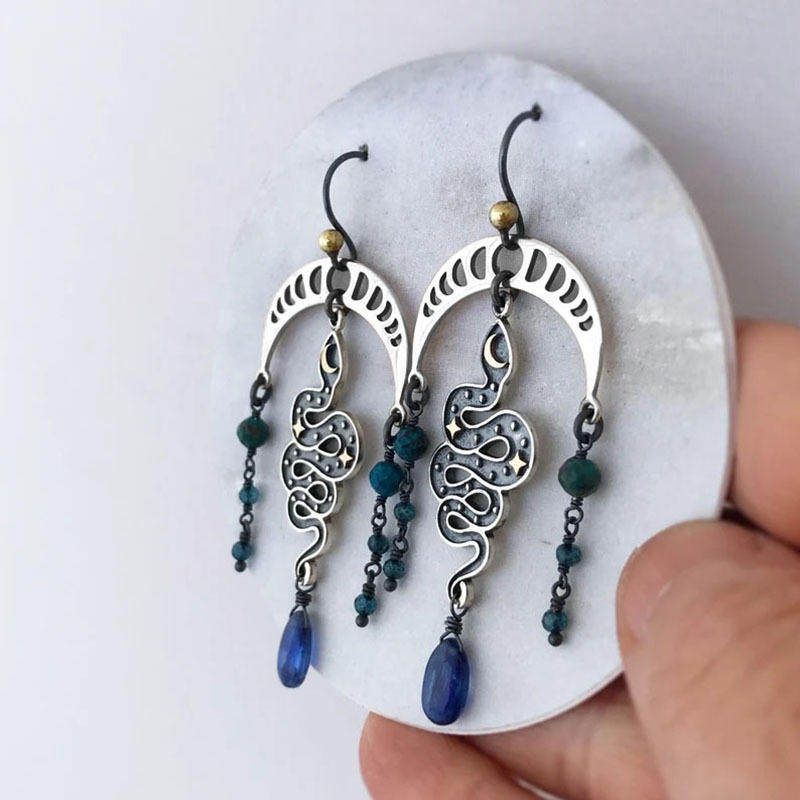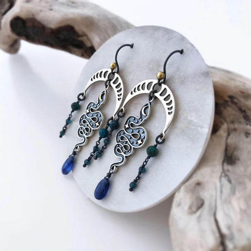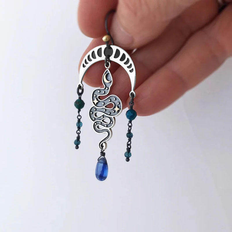 Be the first to review “Celestial Star Moon Snake Earrings Blue Crystal Tassel Dangle Drop Jewelry for Women”