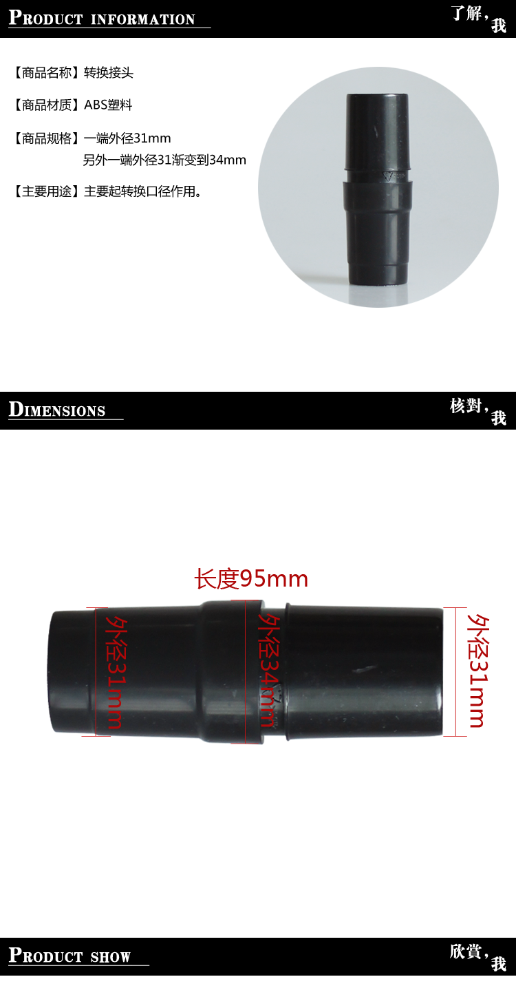 【Main Purpose】Converts a 32mm inner diameter (ID) nozzle to an outer diameter (OD) of 31-34mm, allowing it to be inserted into straight tubes with an inner diameter of 32mm or 35mm.