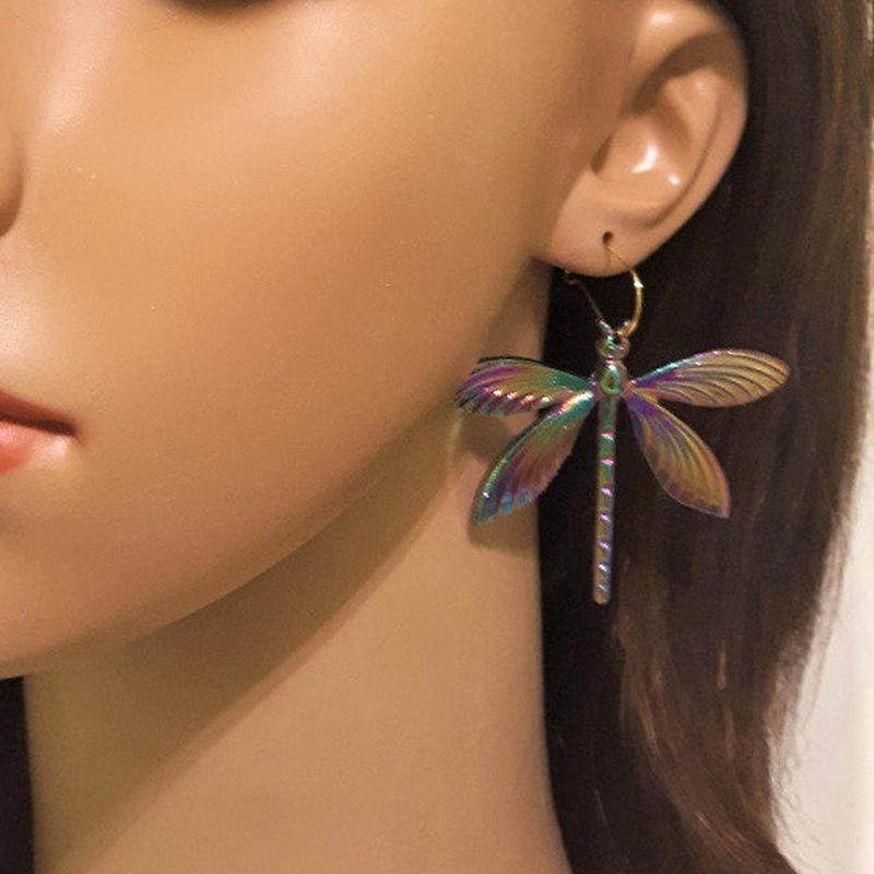 Colorful Dragonfly Alloy Earrings Stylish Trendy Iridescent Accessories