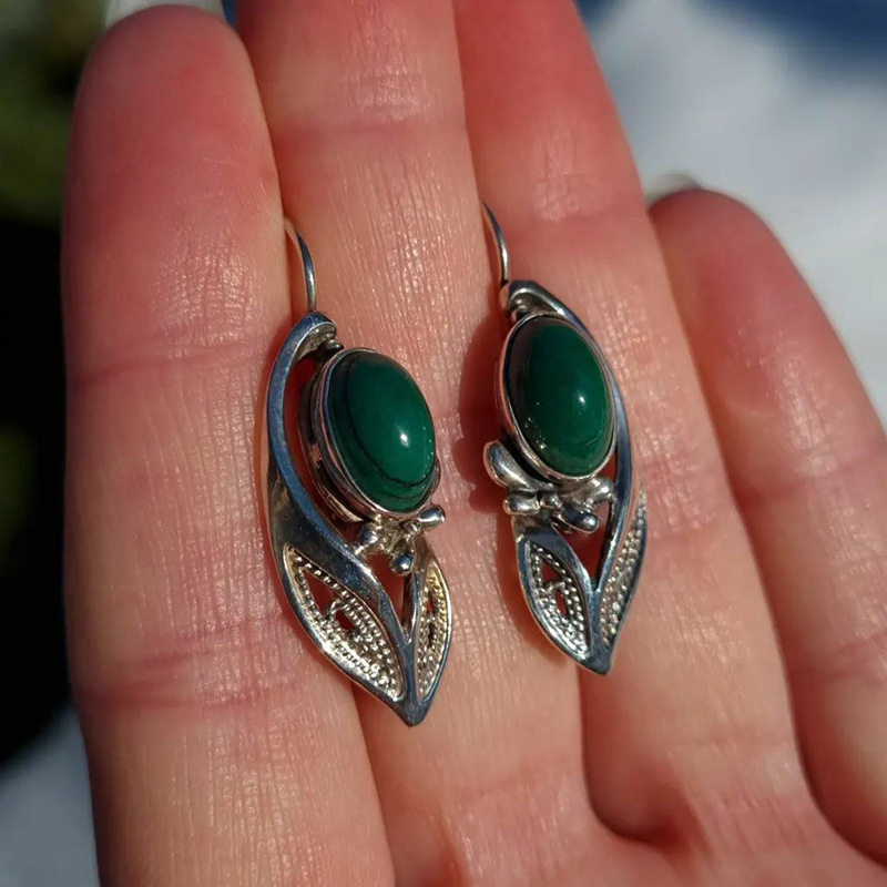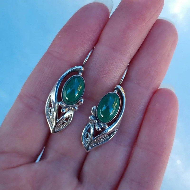 Be the first to review “Ethnic Leaf & Flower Hollow-Out Earrings | Vintage Green Agate Elegant Statement Jewelry Gift for Women”