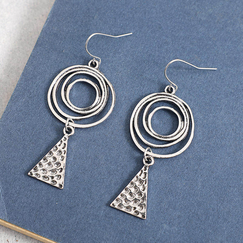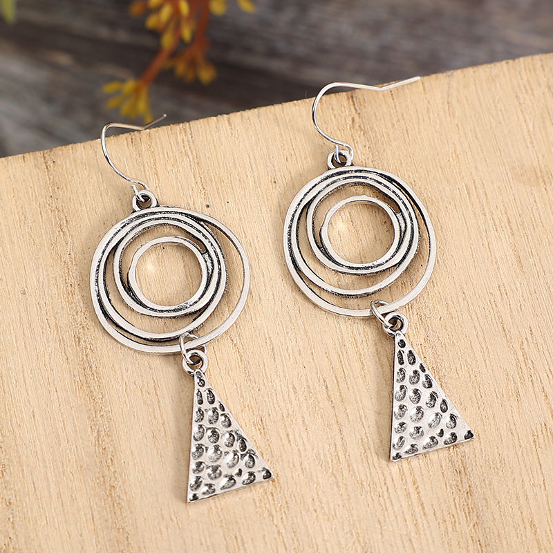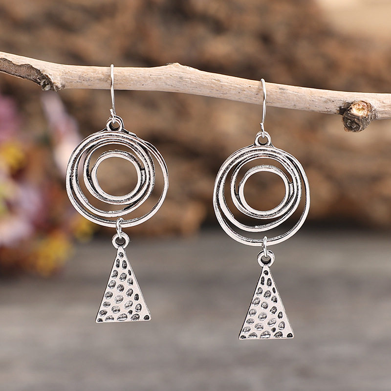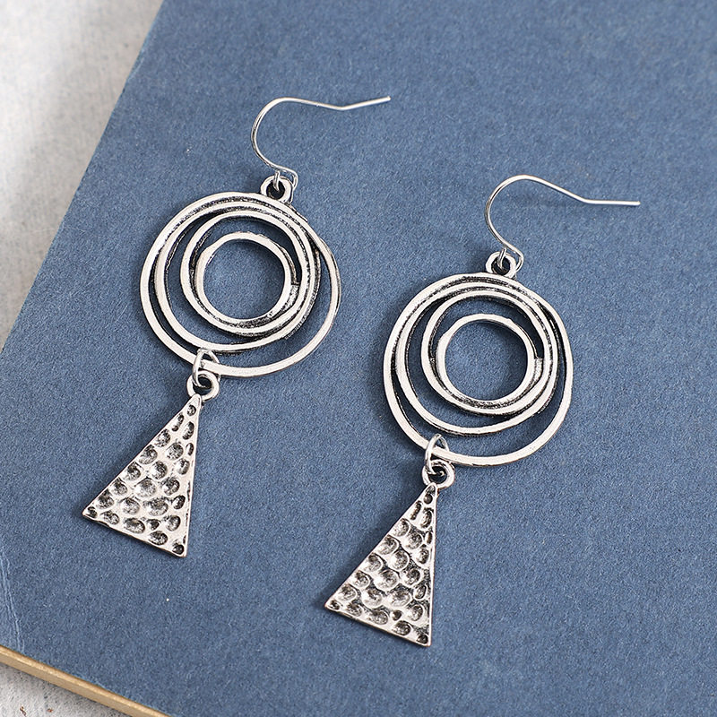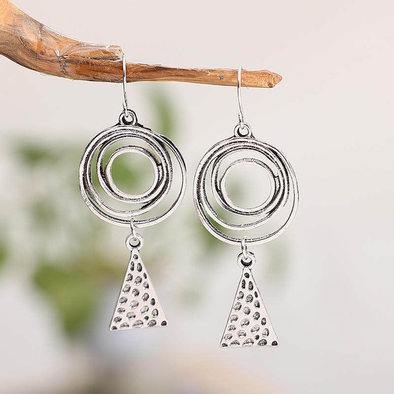 Ethnic Style Spiral Triangle Hammered Metal Earrings for Export