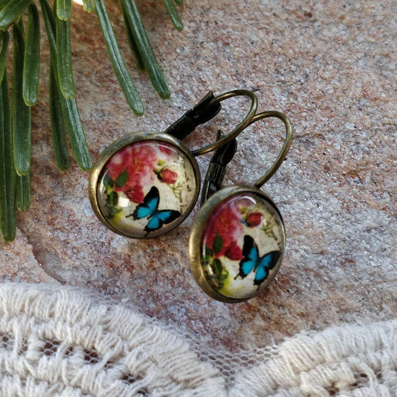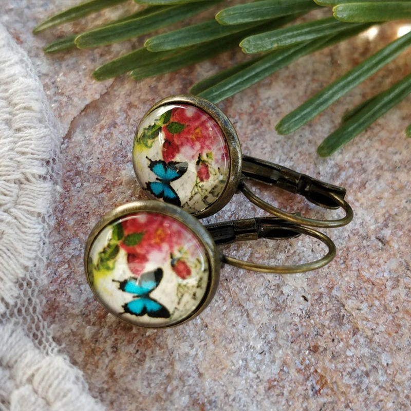 You're viewing: Foreign trade cross-border new style retro old butterfly time gemstone glass earrings ethnic style European and American earrings$16.54