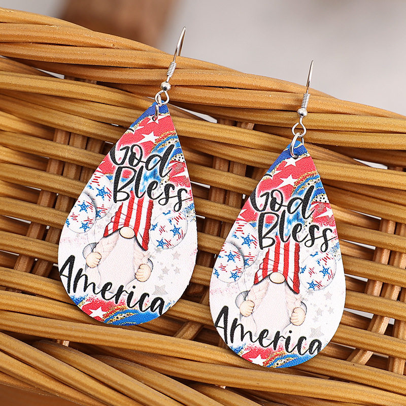 Independence Day Flag Gnome Double-Sided Printed PU Leather Earrings | Patriotic Party Accessories