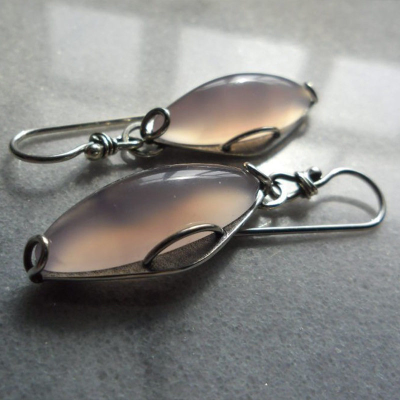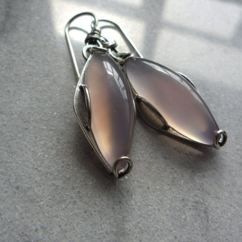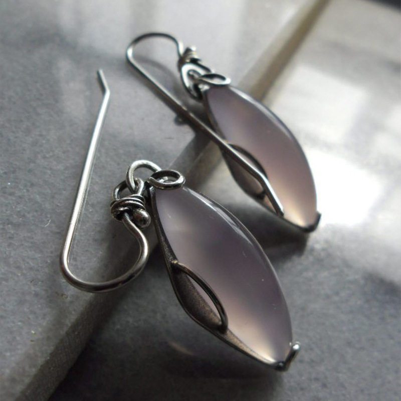 Minimalist Teardrop Earrings with Inlaid Pink Crystal Jade Vintage Western Style Jewelry。