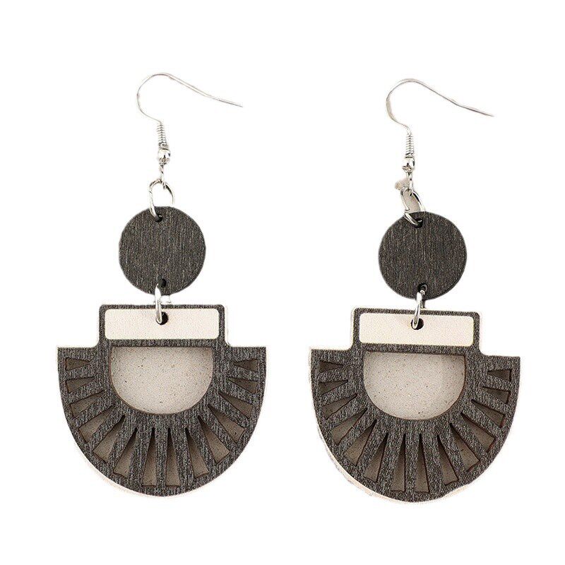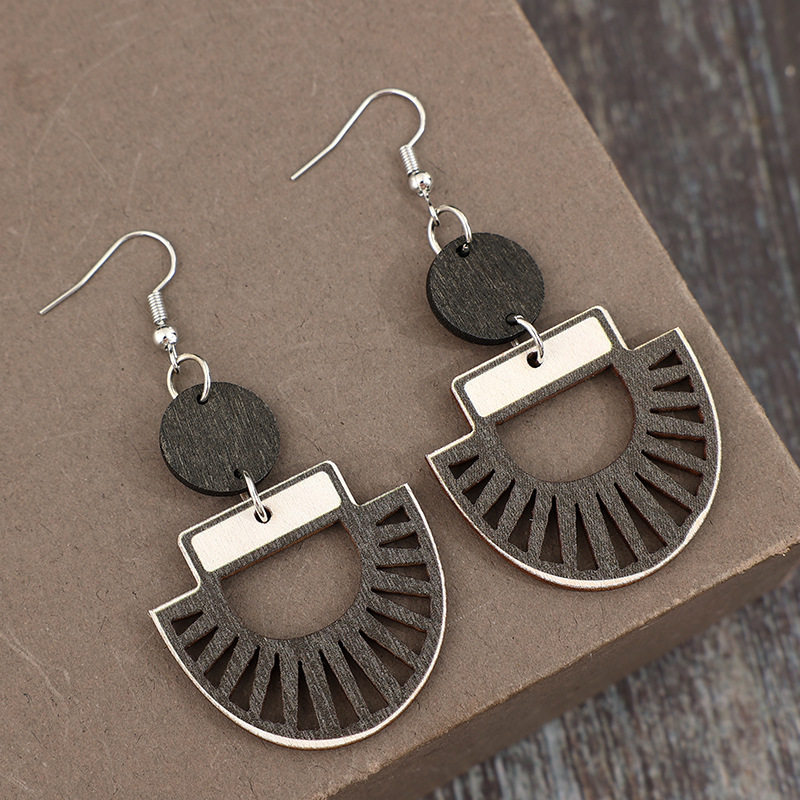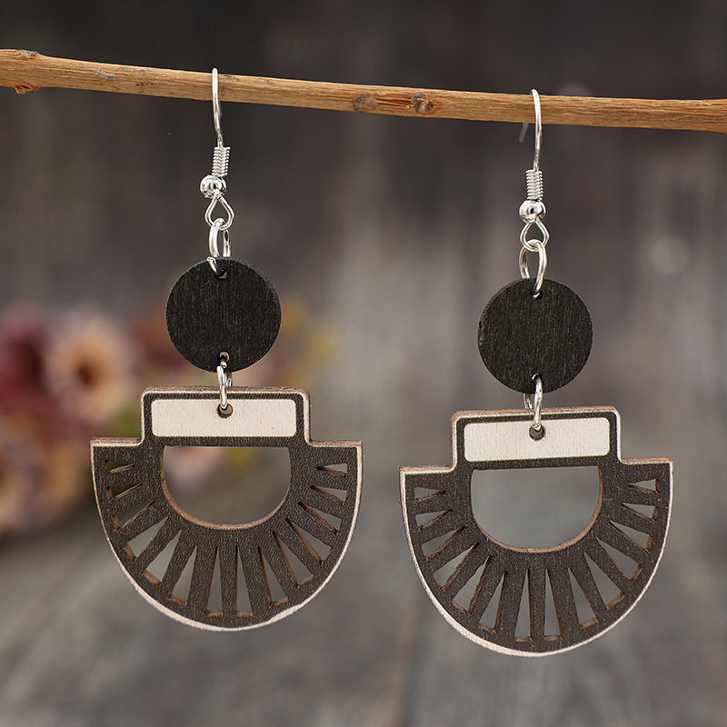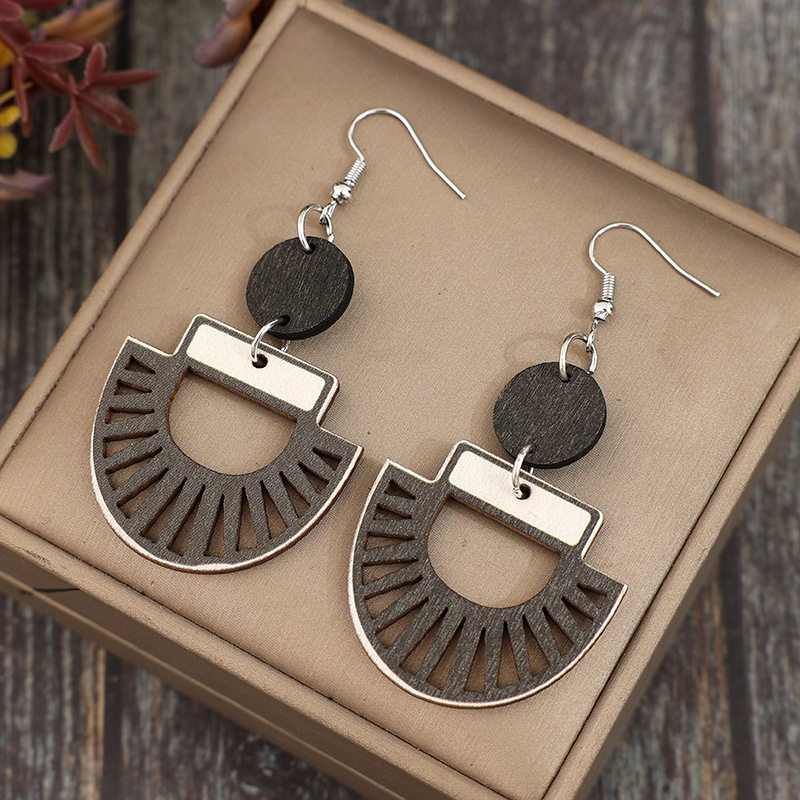 Retro hollow geometric splicing disc wooden simple women’s earrings