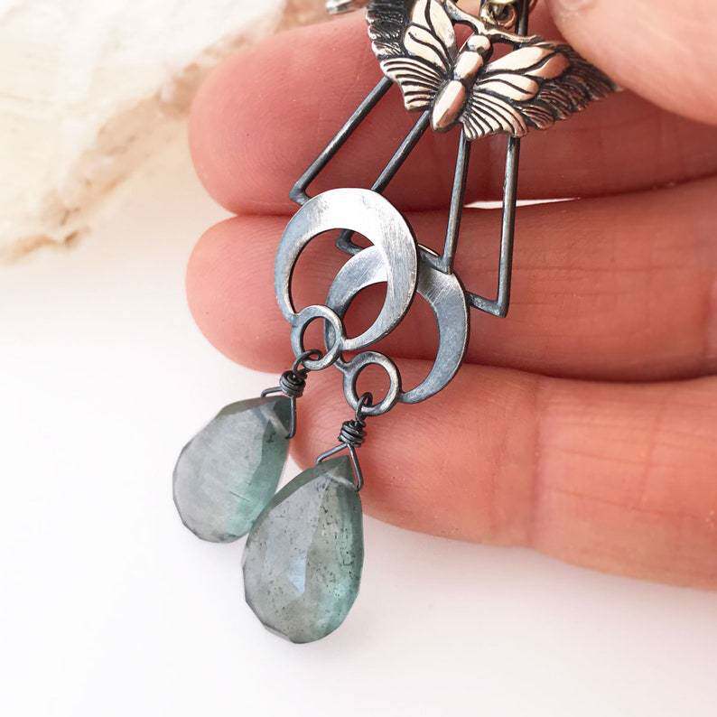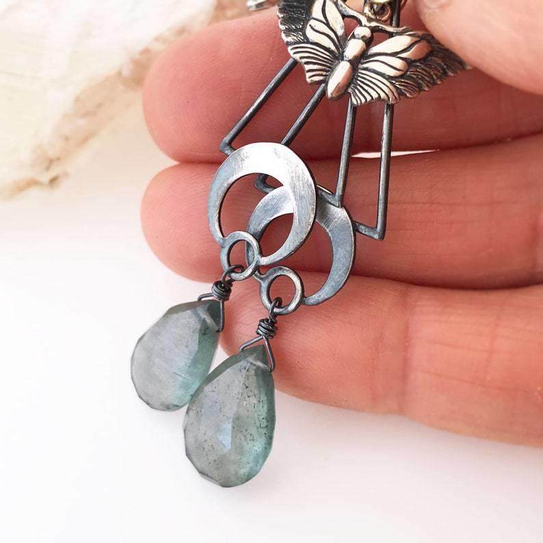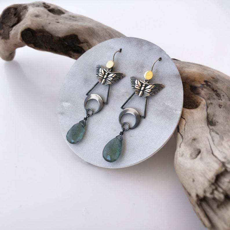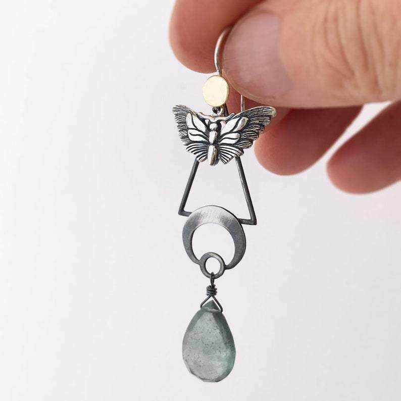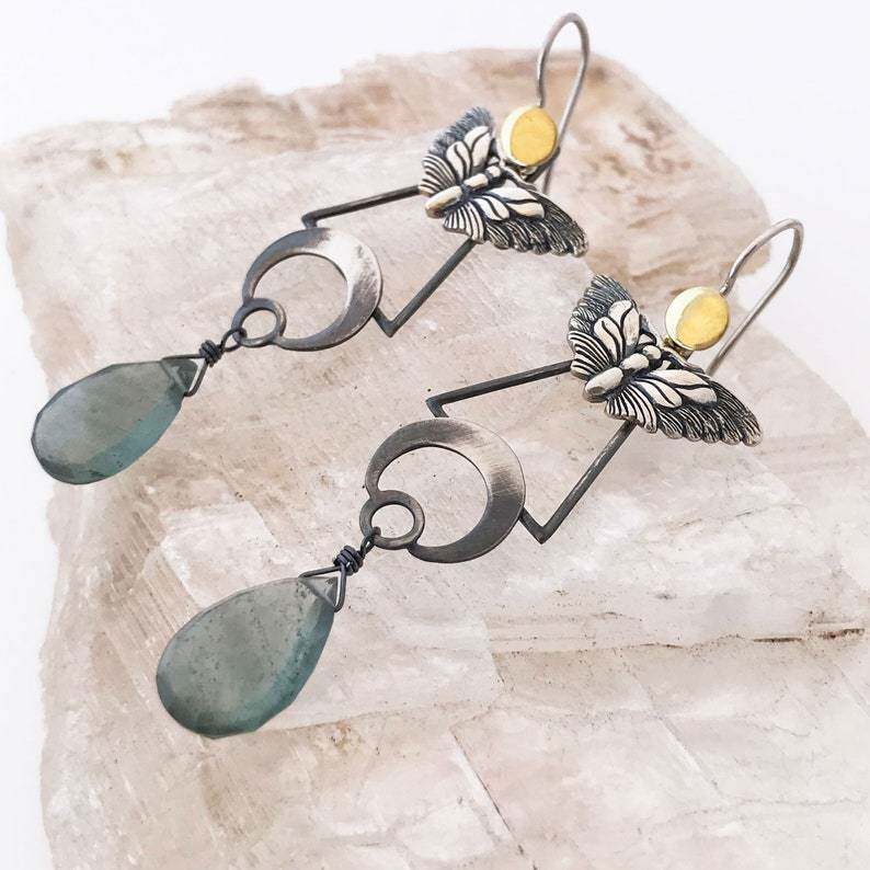 Retro Skull & Moth Dangle Earrings for Women Antiqued Teardrop Gem Earrings