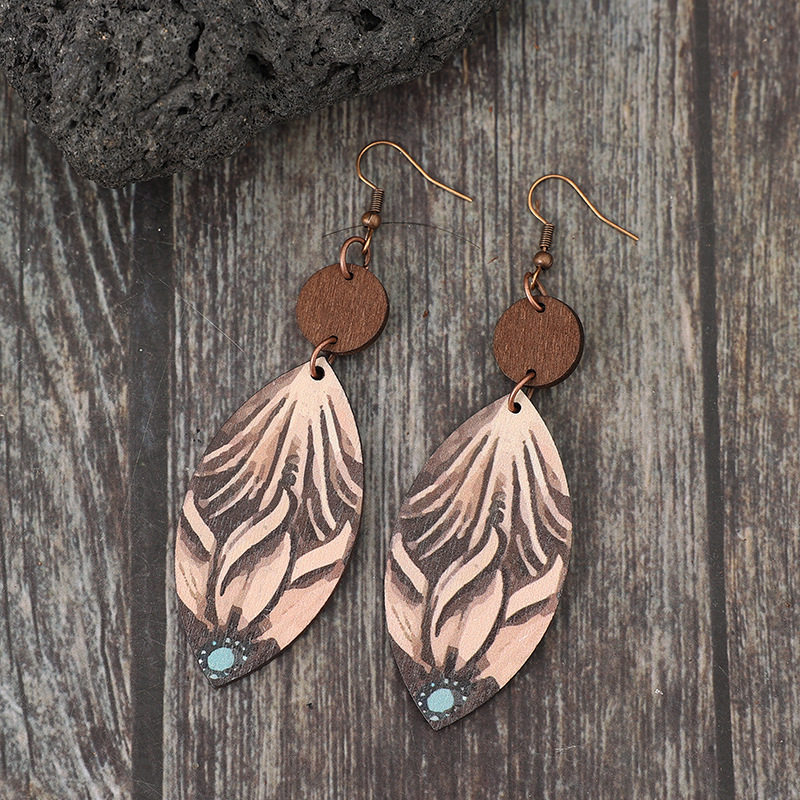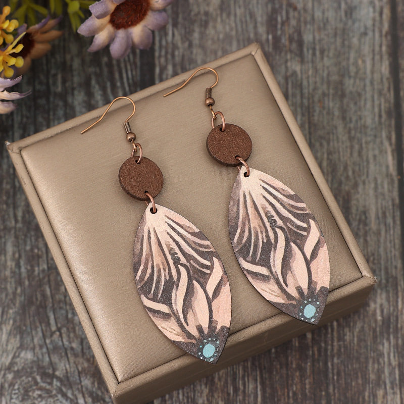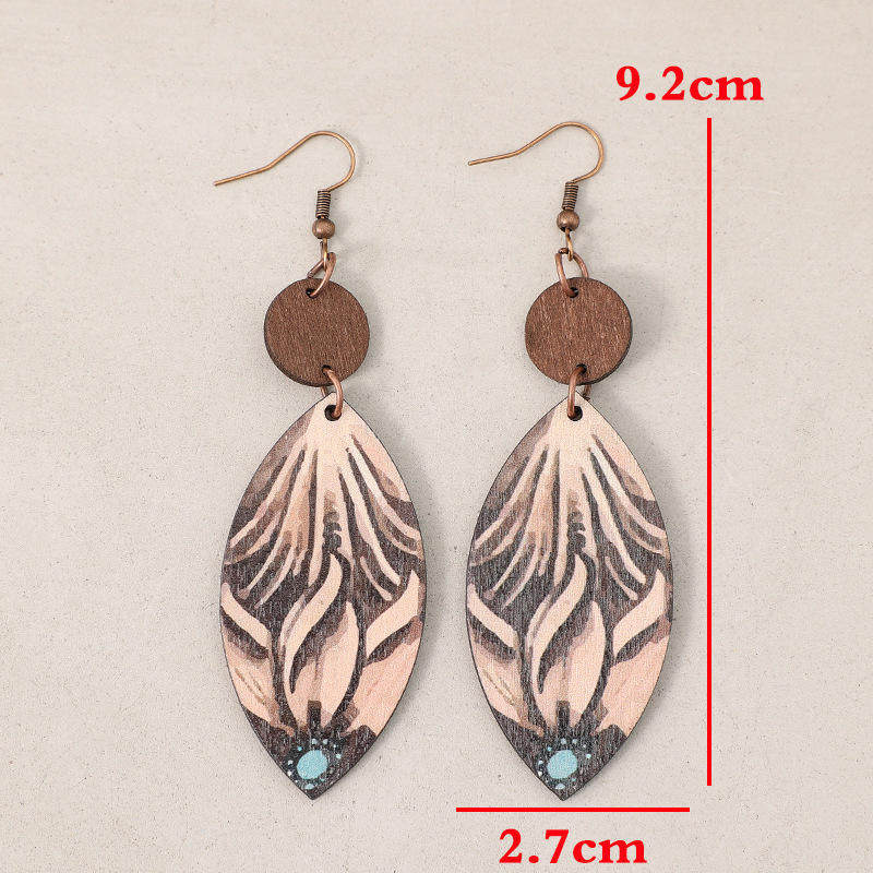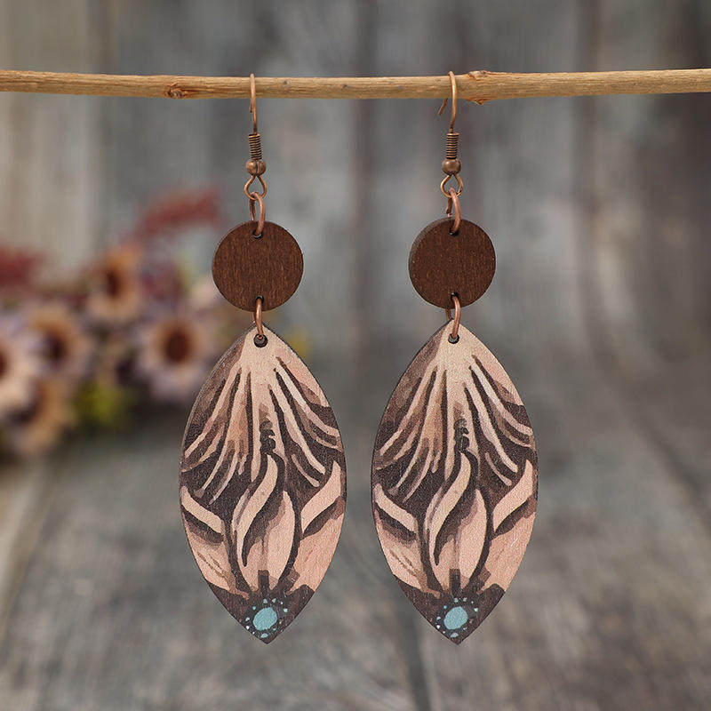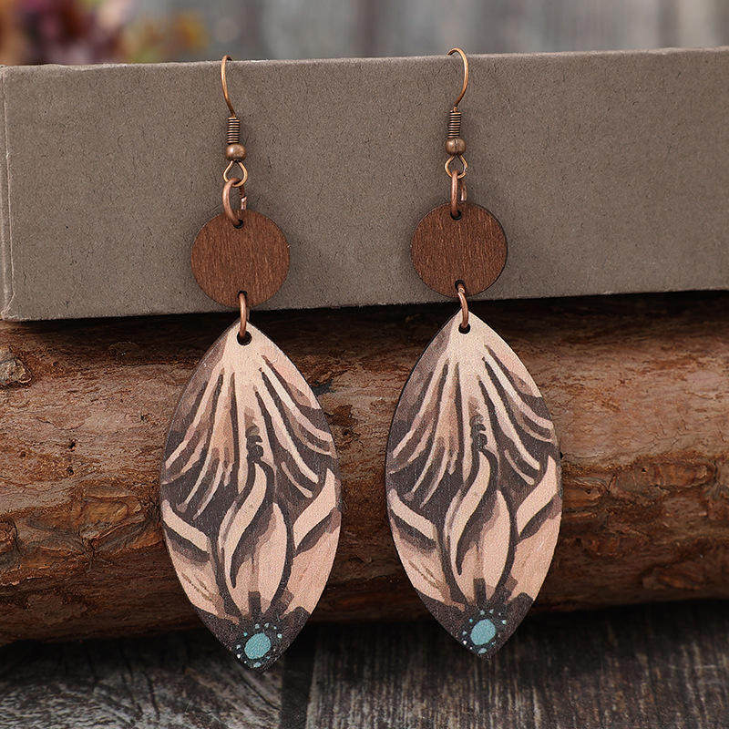 Be the first to review “Retro Western Wooden Earrings | Small Disc Patchwork Carved Teardrop Dangle Earrings”