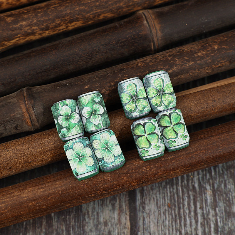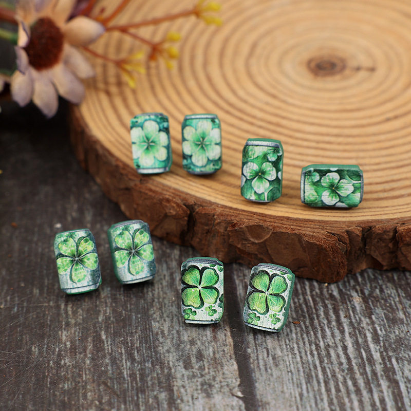 St. Patrick’s Day Creative Can-Printed Clover Wooden Vintage Earrings | Festive Jewelry