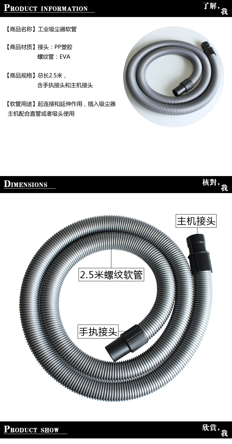 Product Specifications: 1 Set of Industrial Hose (2.5m threaded hose, including hand-held connector and main unit connector)