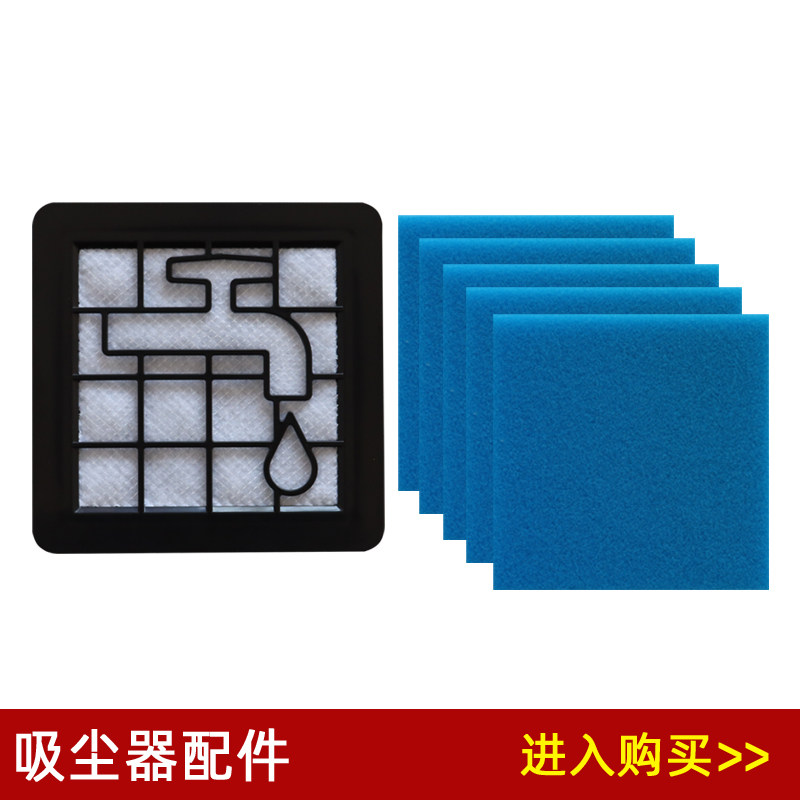 1 filter, 5 pieces blue cotton, 1 filter 5 pieces blue cotton, 1 floor brush, 1 telescopic tube, Small tip set, 1 pneumatic suction head
