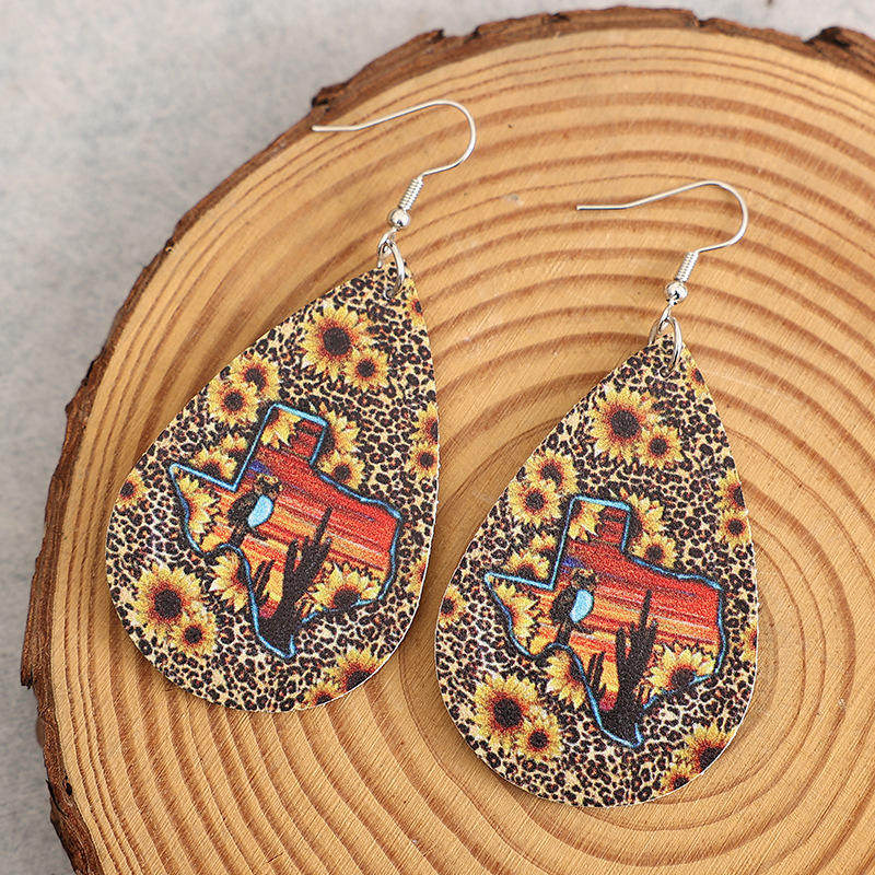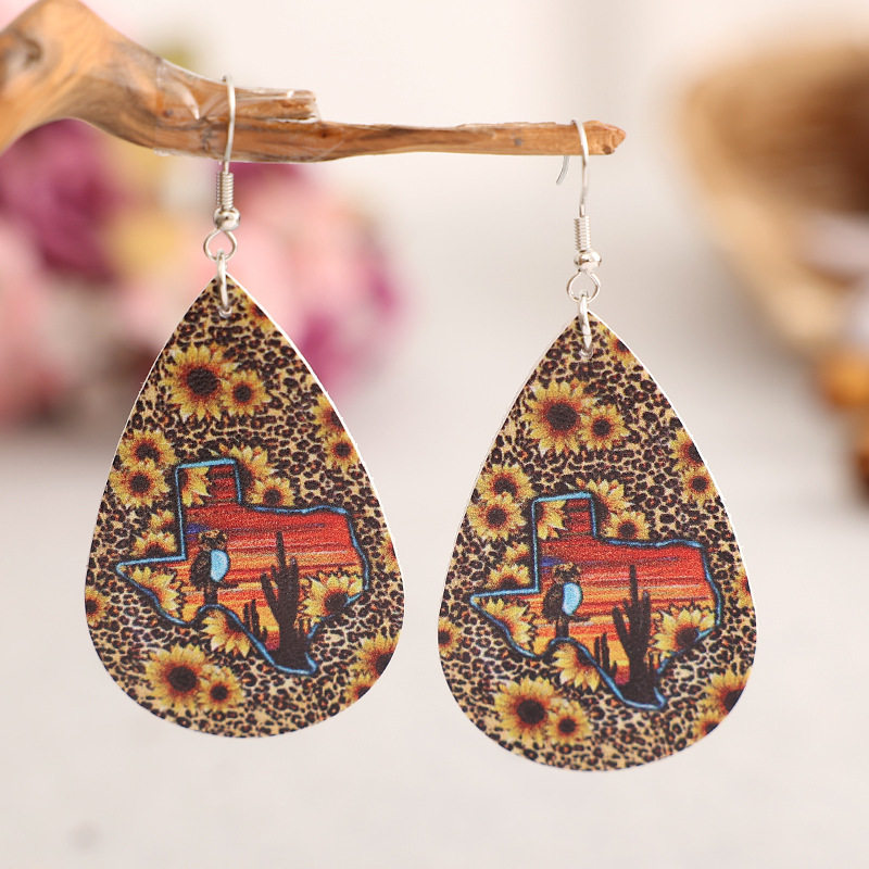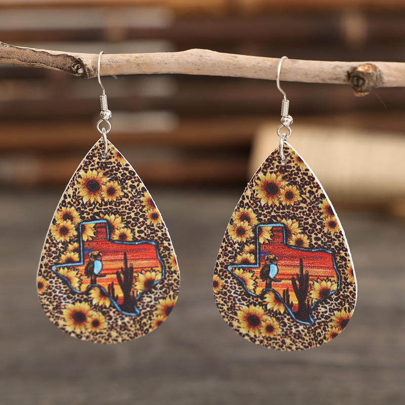 Sunflower Leopard Cactus Printed Teardrop Earrings | Bohemian Patterned Dangle Jewelry