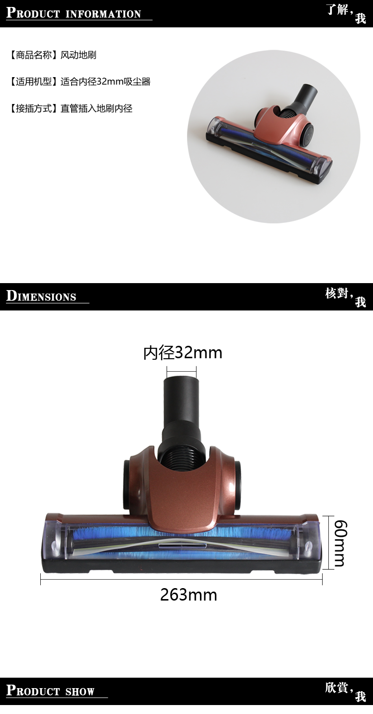 [Product Name] 32mm Air-Driven Vacuum Floor Brush (Accessory)[Floor Brush Dimensions]