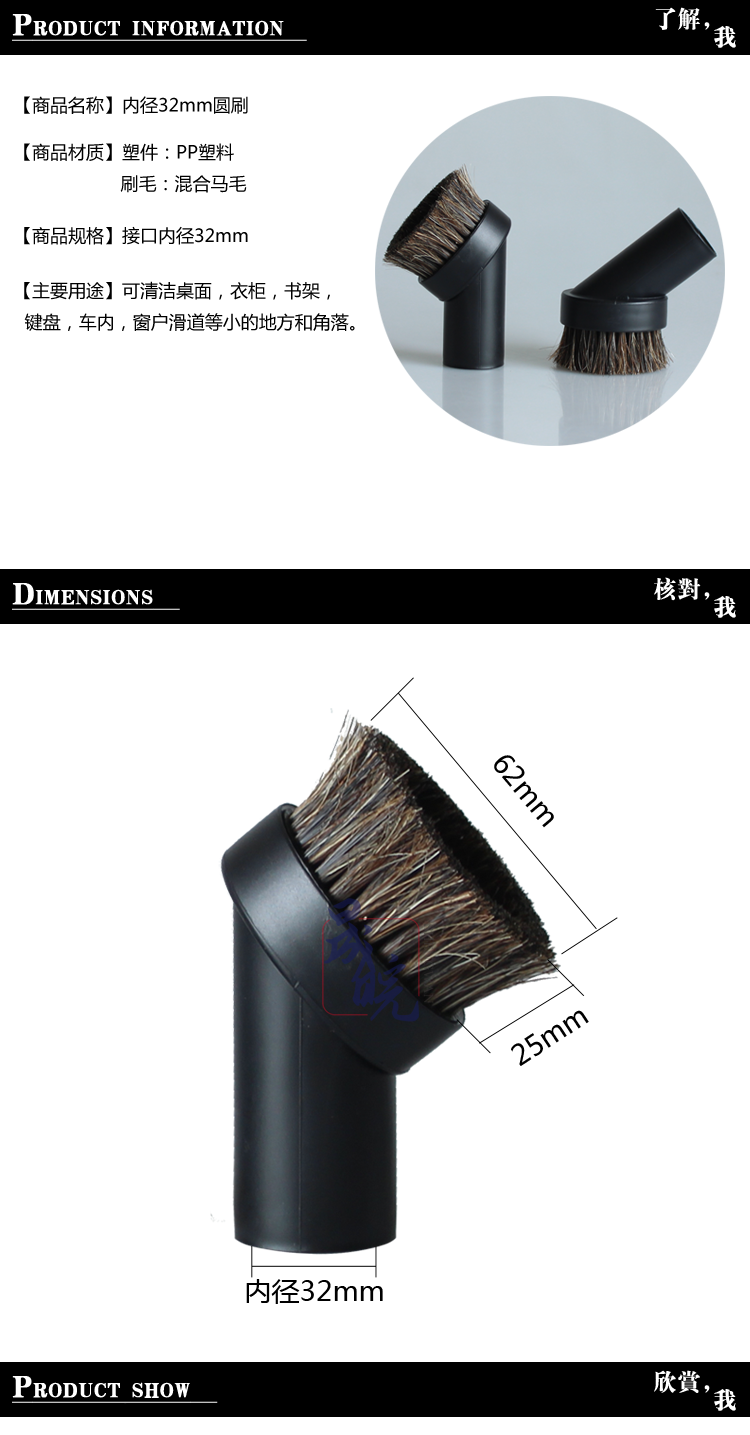 【Product Name】32mm Inner Diameter Horsehair Round Brush