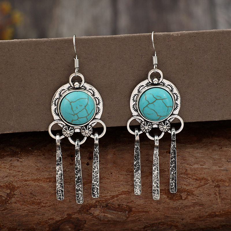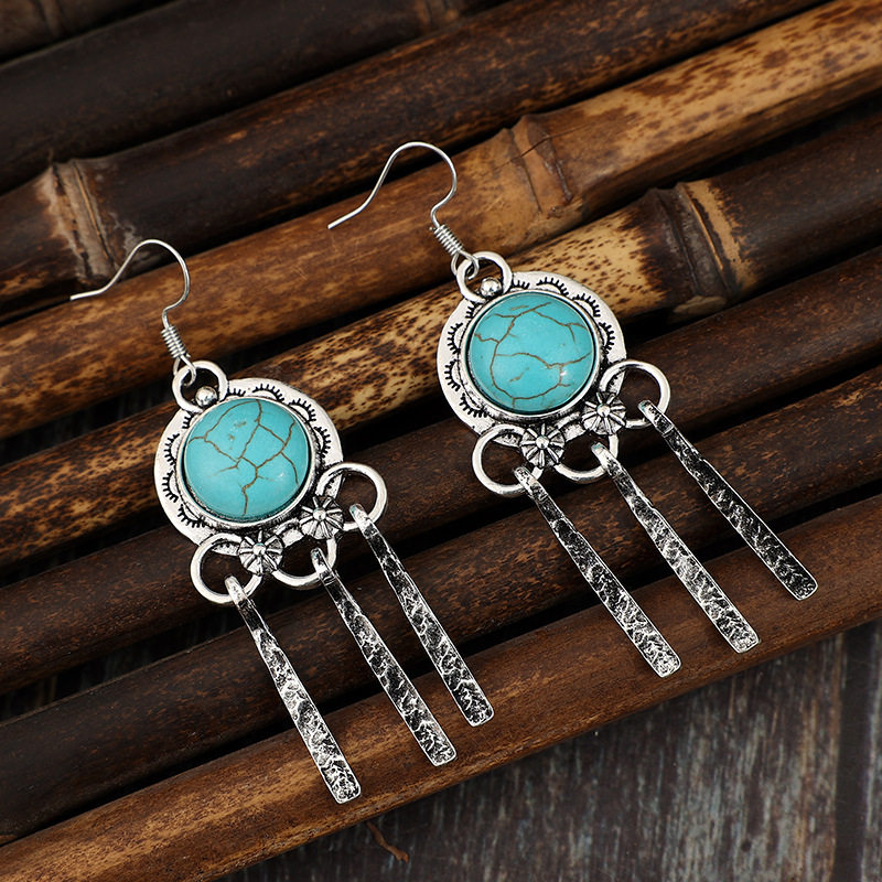 Vintage Bohemian Tassel Dangle Turquoise Alloy Earrings | Ethnic Style Jewelry
