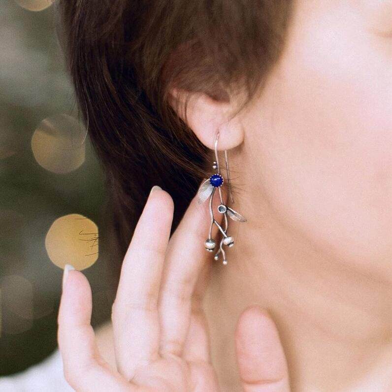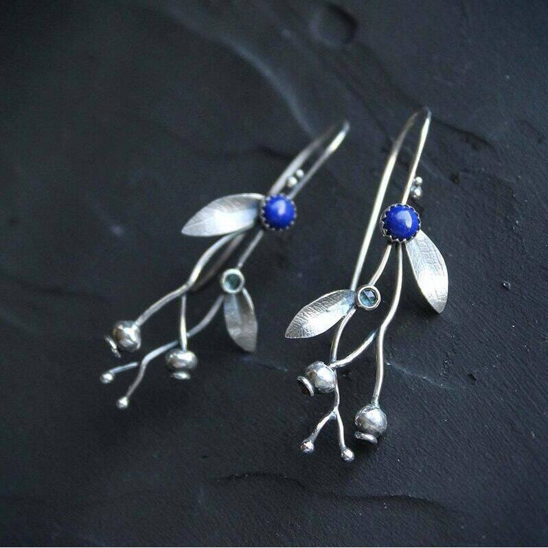 Be the first to review “Vintage Branch & Vine Earrings Minimalist Western Leaf & Blue Stone Bead Hooks”