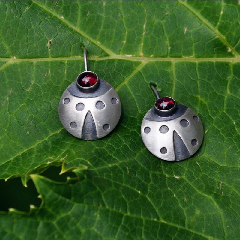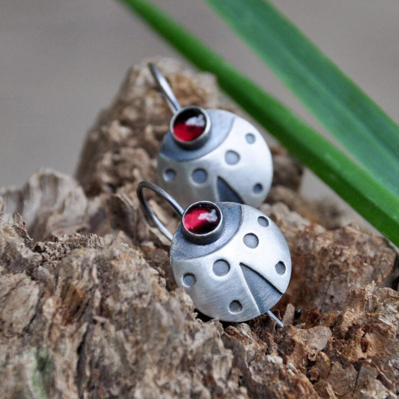 Vintage Creative Ladybug Alloy Earrings Western Ruby Insect Jewelry for Women