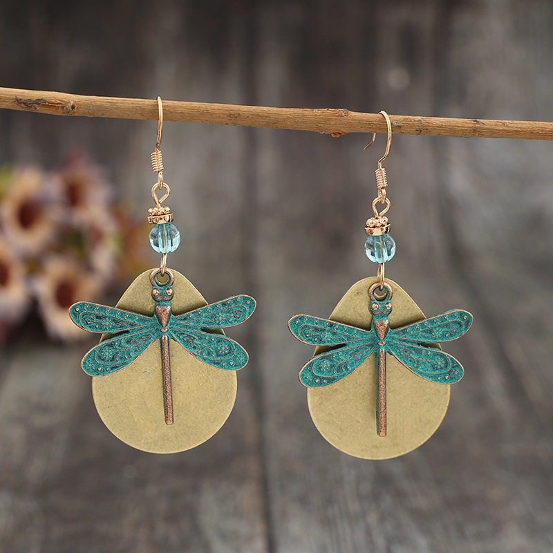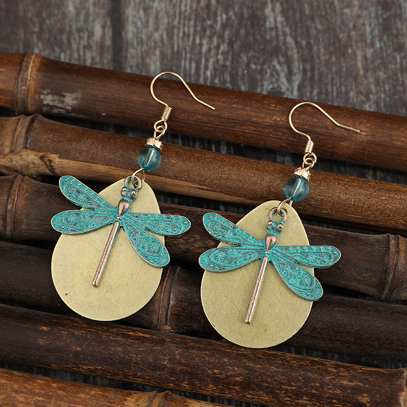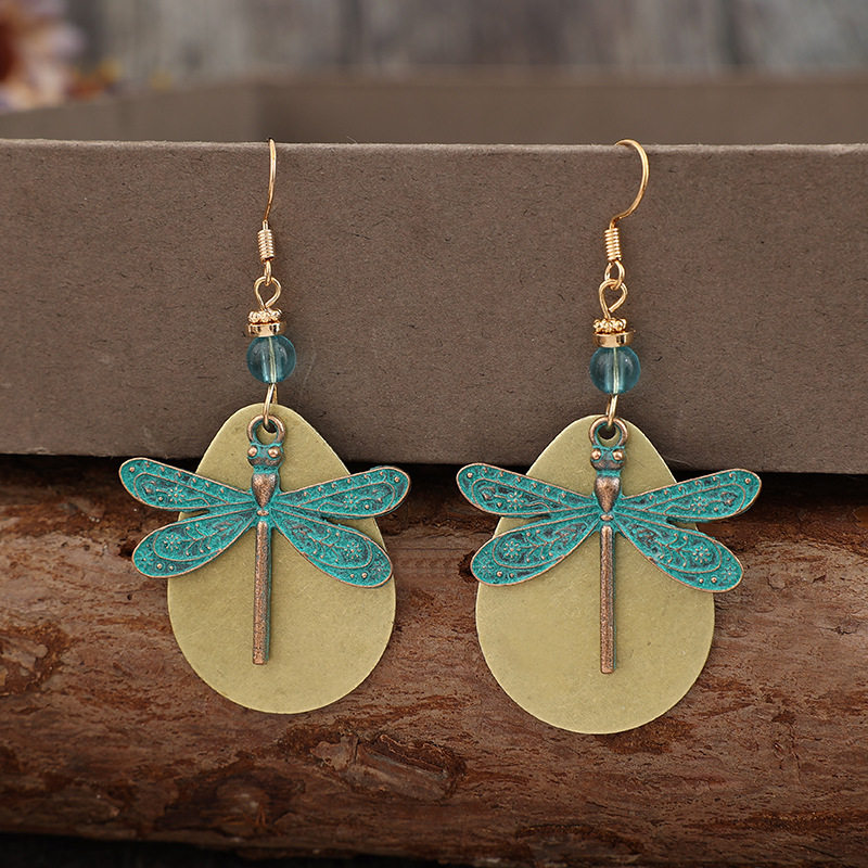 Vintage Distressed Double – Layer Teardrop – Shaped Dragonfly Bohemian Fashion Beaded Alloy Earrings | Unique Jewelry
