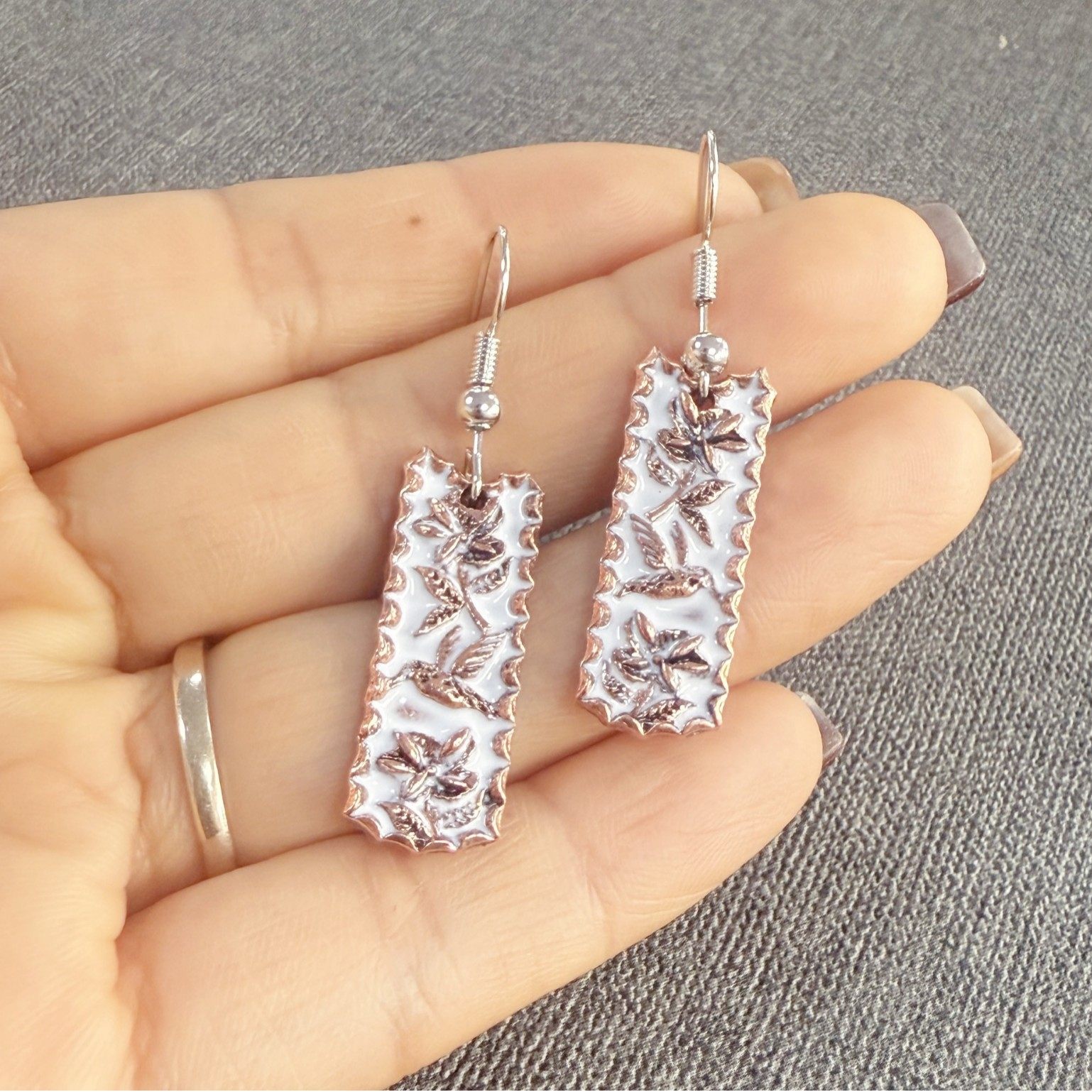 Vintage Distressed Long Carved 3D Pattern Epoxy Alloy Earrings | Creative Jewelry