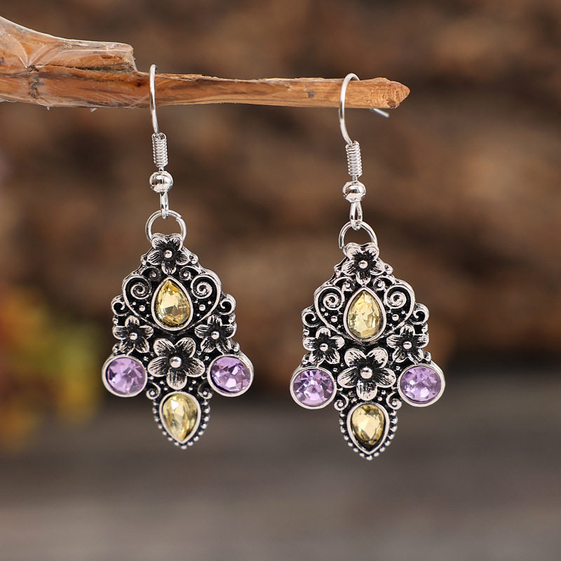 Vintage Ethnic Style Carved Teardrop Pear-Shaped Earrings Diamond-Embedded Jewelry