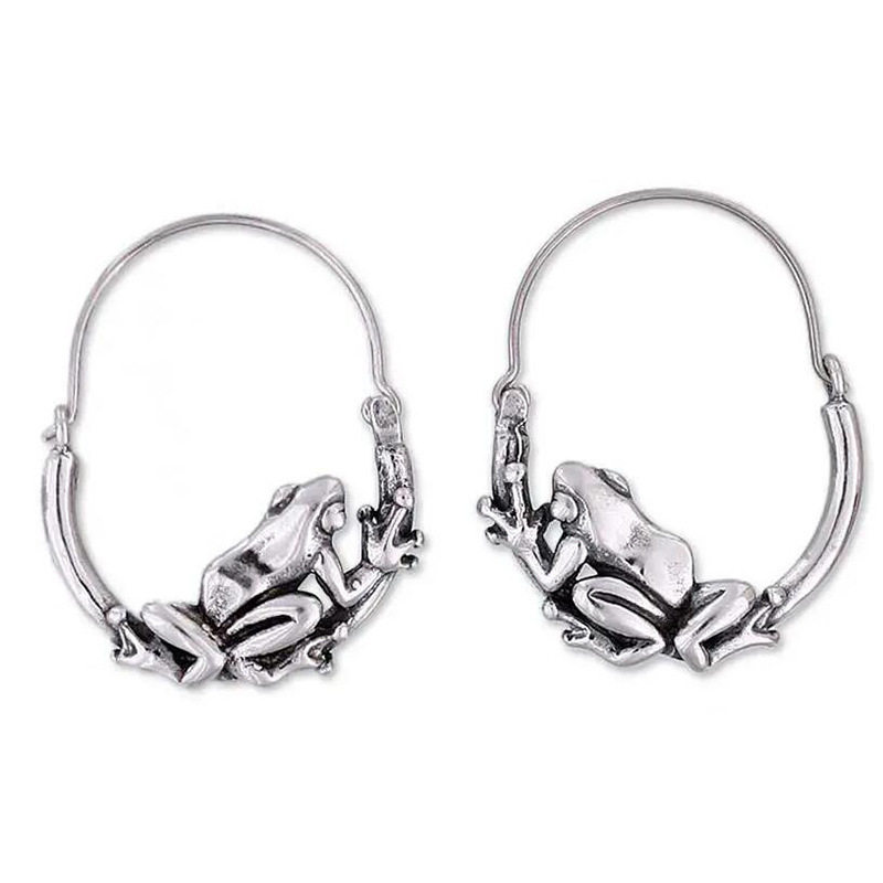 Vintage Fashion Frog Hoop Earrings Creative Animal Dangle Jewelry for Women