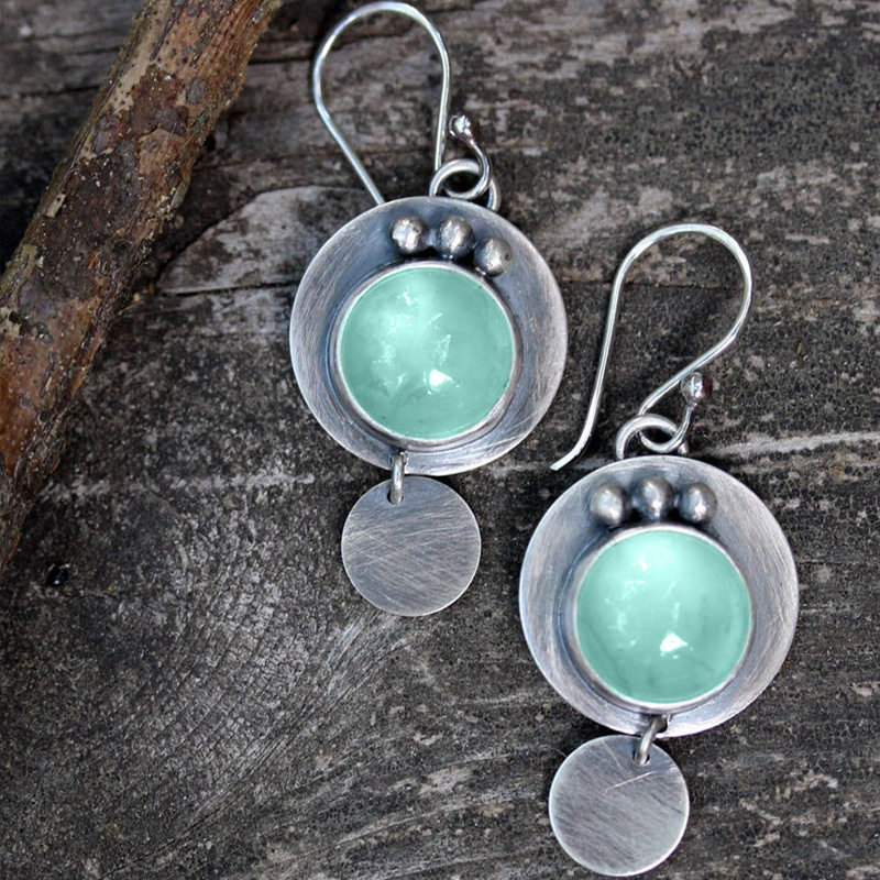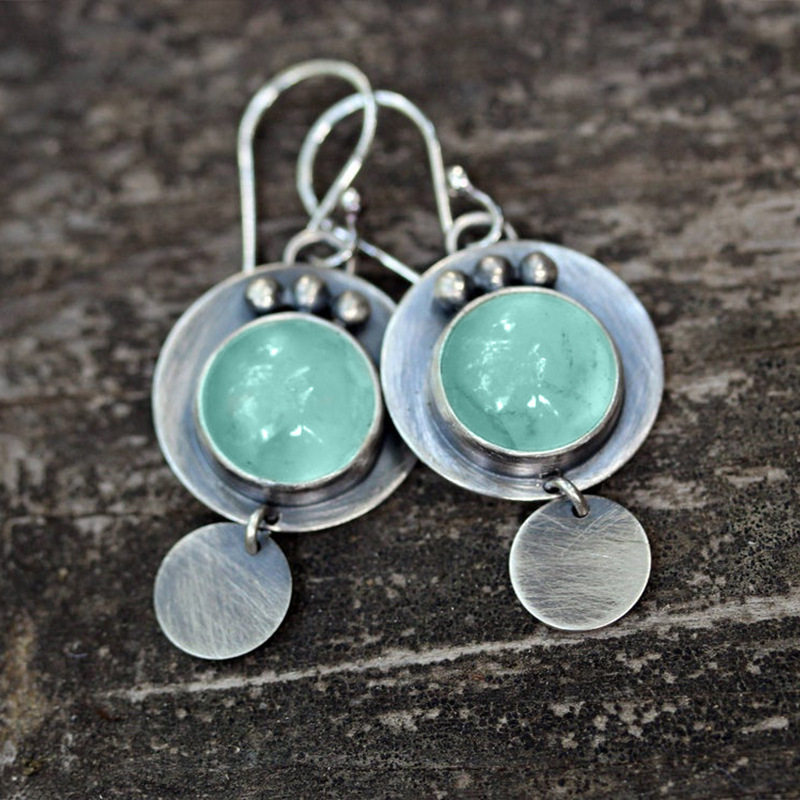 Vintage Geometric Disc Earrings Fashion Cat’s Eye Stone Inlaid Jewelry for Women