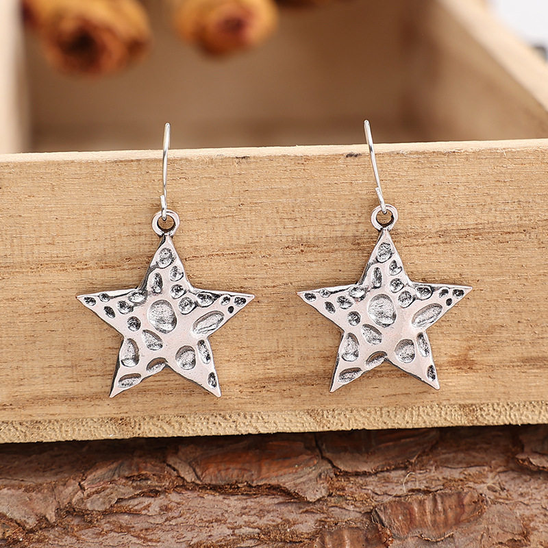 Vintage Hammered Texture Star Drop Earrings Minimalist Western Style Jewelry