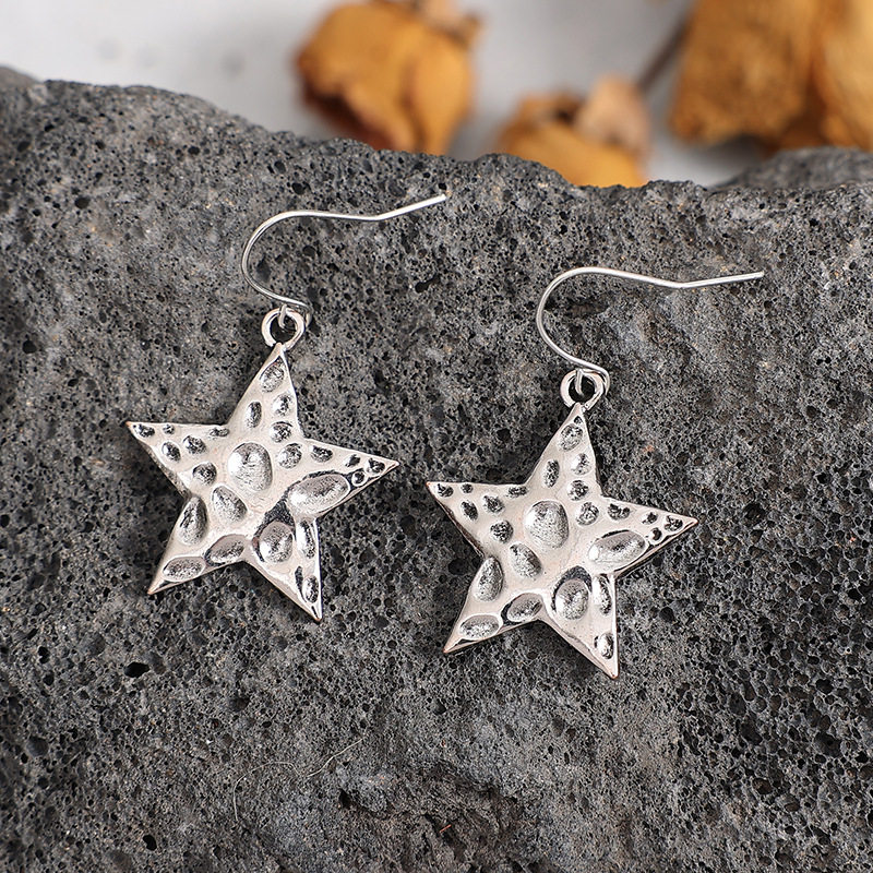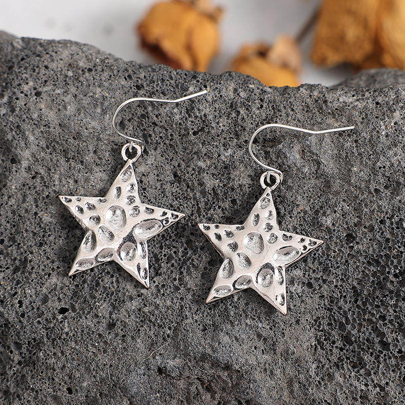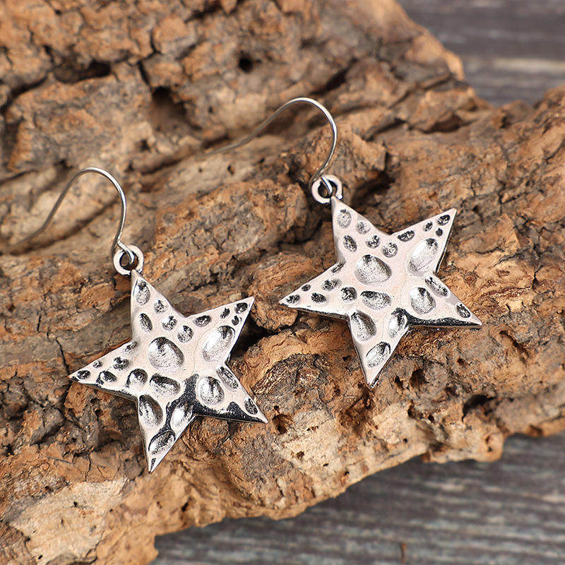 Be the first to review “Vintage Hammered Texture Star Drop Earrings Minimalist Western Style Jewelry”