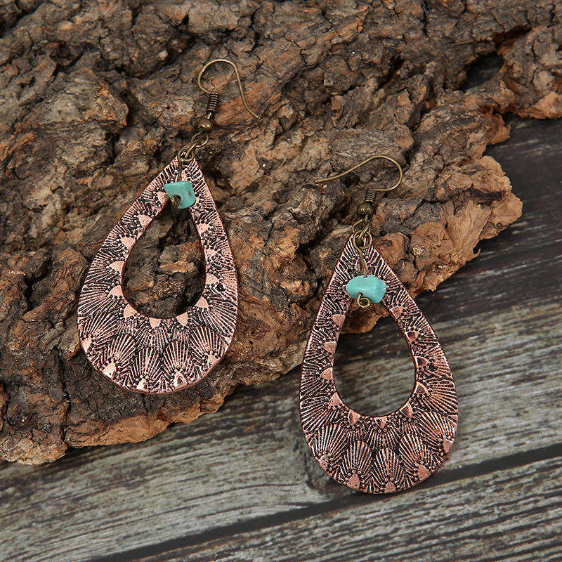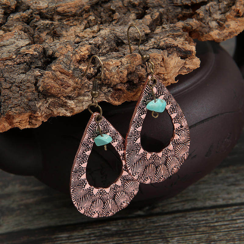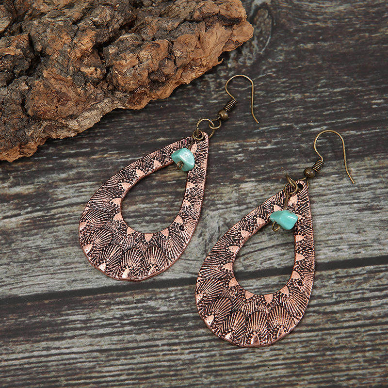 Vintage Metal Turquoise Copper Earrings | Bohemian Style Green Turquoise Teardrop Dangle Jewelry