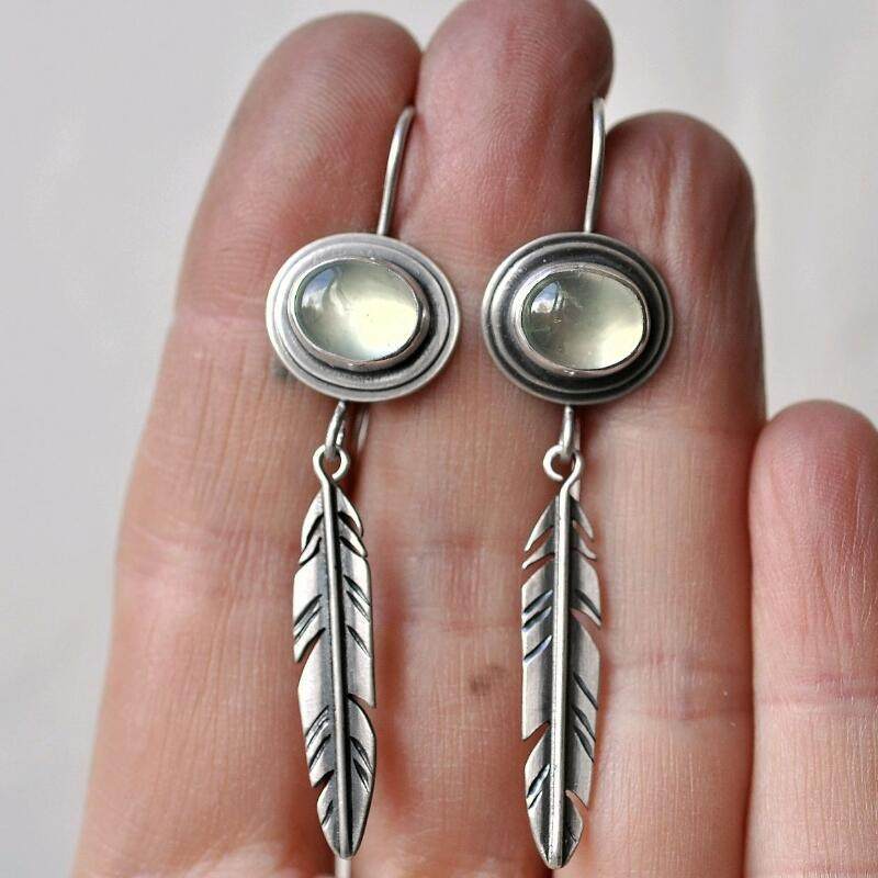 Be the first to review “Vintage Minimalist Cat’s Eye Feather Drop Earrings”