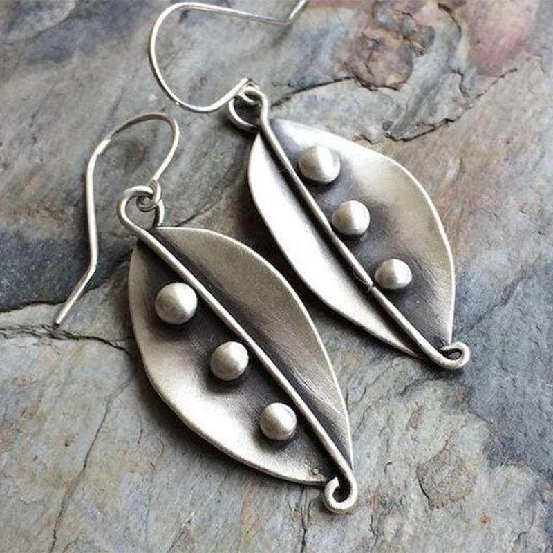 Vintage Silver Leaf Earrings Western Ethnic Style Minimalist Forest – inspired Drops for Cross – border