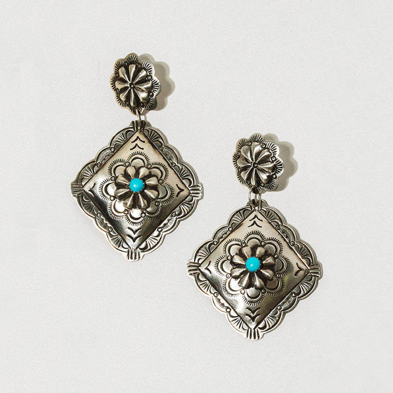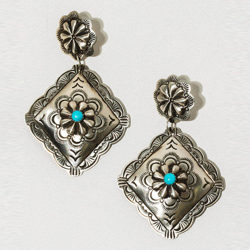 Be the first to review “Vintage Silver Rhombus Carved Turquoise Stud Earrings Ethnic Western Jewelry”