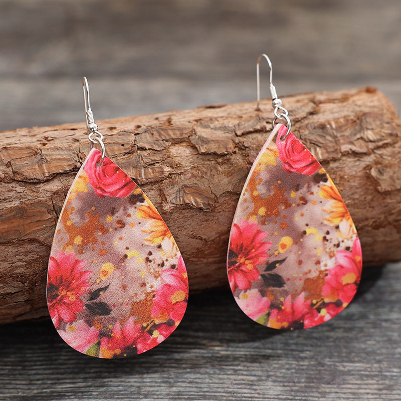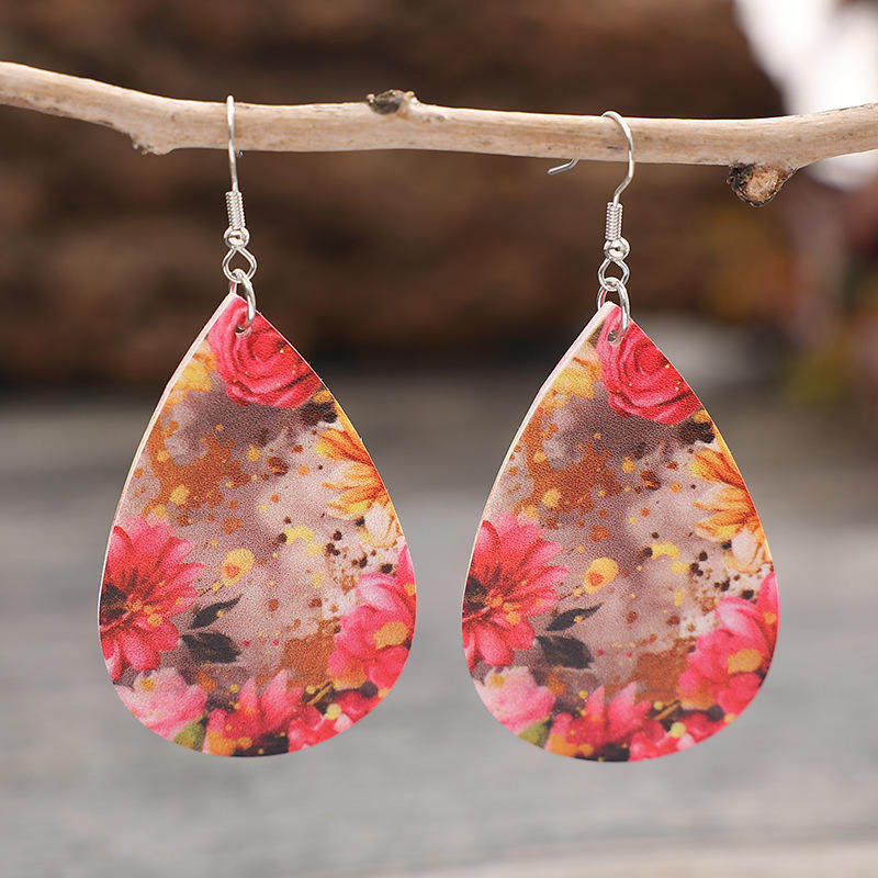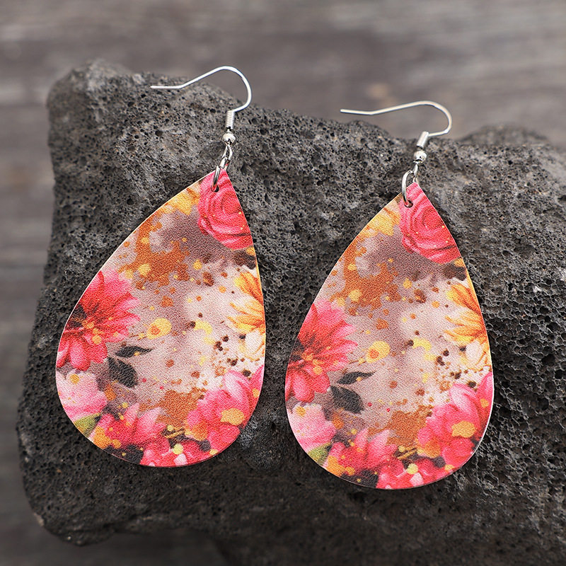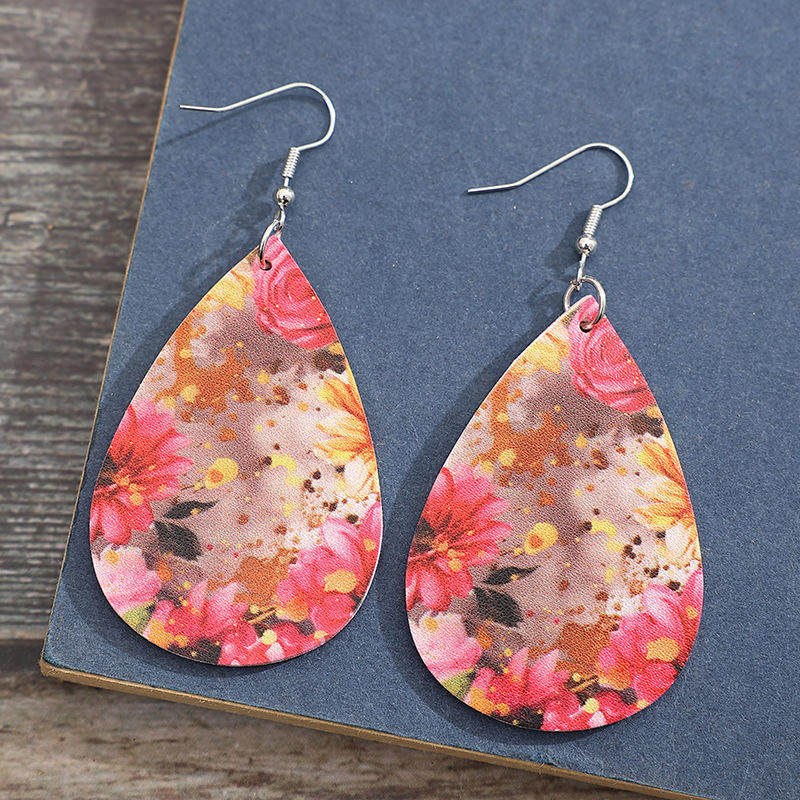 Vintage Teardrop Flower Leather Earrings European American Ethnic Floral Classic Jewelry