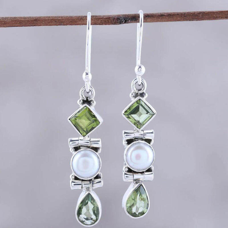 Be the first to review “Vintage Thai Silver Pearl Earrings for Women Creative Square Diamond Teardrop Olive Green Long Drop Jewelry”